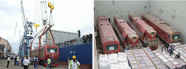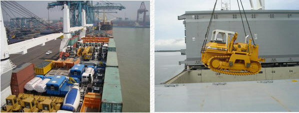 Par ailleurs, toute sortes de camions, machines de chantier et voitures sont souvent chargées sur ces