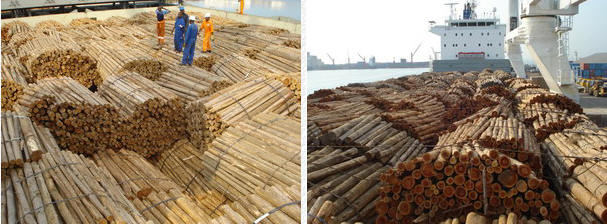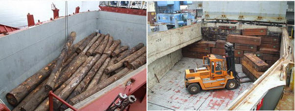 Du bois tropical est aussi transporté au retour d'Afrique, sous forme de grumes (tronc/bille)