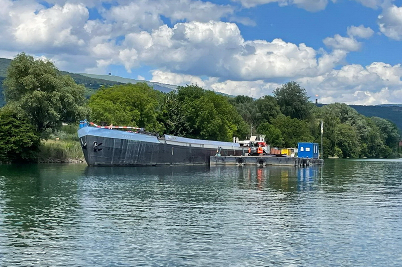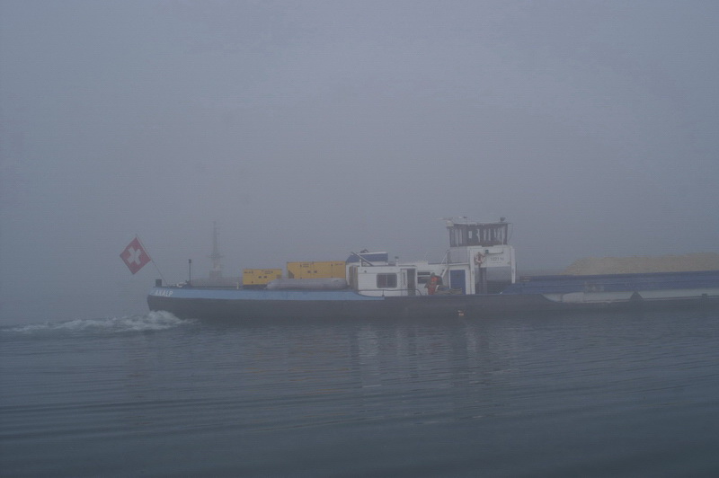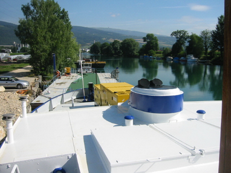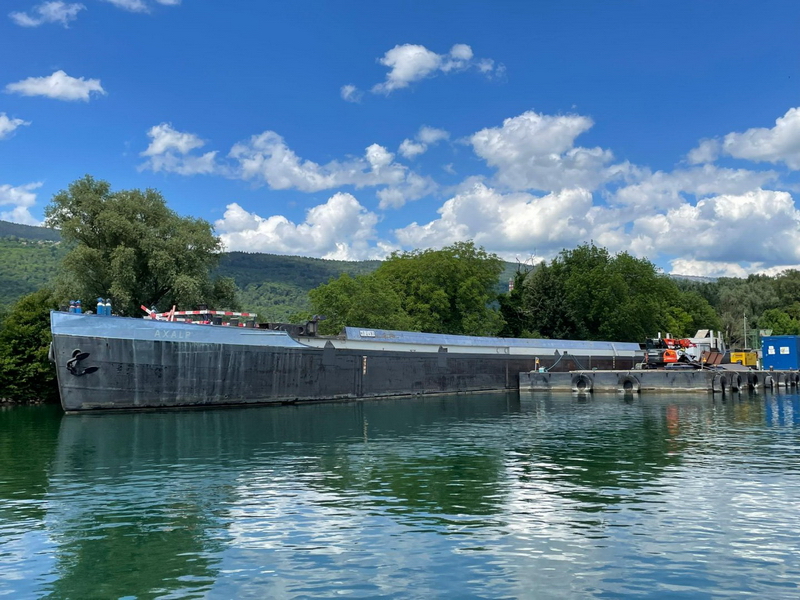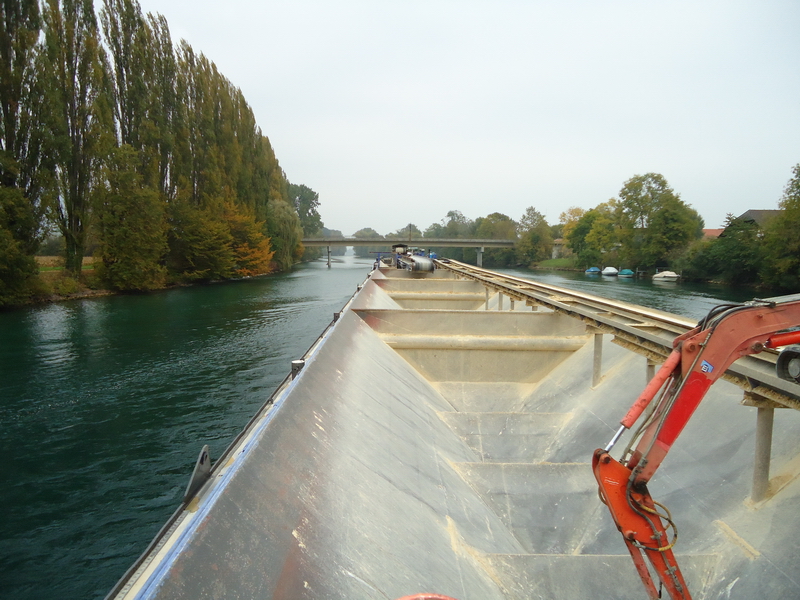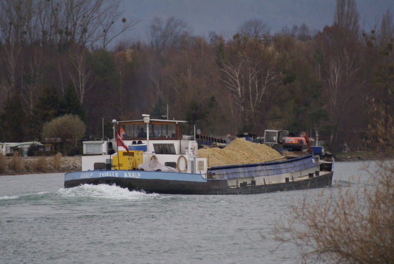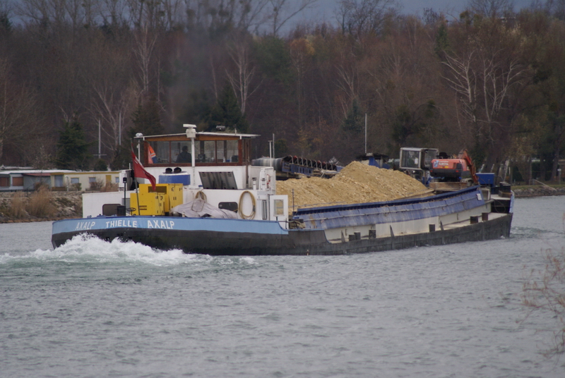 Histoire du navire Le chaland automoteur AXALP fut construit selon les plans de l’architecte naval suisse bien connu, Adolf J.Ryniker, par le chantier naval N.V. Scheepswerfen v/h H. H. Bodewes, Millingen a/d Rijn, avec le no de construction 422, pour l’armateur bâlois Basler Rheinschiffahrt AG (BRAG). La bateau fut livré à l’armateur le 11.08.1049 et fut mis en service sous pavillon suisse, immatriculation no. 427. Dès 1951, en été, un module à passagers contenant 4 cabines doubles, cambuse et salon fut installé devant le château arrière sur un pont renforçé. Ce module de 13 tonnes fut construit par le chantier naval Gutehoffnungshütte Oberhausen A.G., Rheinwerft, Walsum. D’après un croquis retrouvé, il y aurait aussi eu des cabines supplémentaires à l’avant du bateau. Ce module d’habitation ne fut cependant pas toujours utilisé. En hiver, le bateau navigait parfois comme bateau-école pour la formation des mousses de l’armement BRAG. Sinon, le module était déposé à terre pour l’hiver. 1968, vendu à BRAGTANK et, 1969, modifié et allongé par le chantier Rheinwerft in Mainz-Mombach pour devenir un chaland à gravier auto-déchargeant, il travailla dans la région bâloise. 04.11.1982, vendu à Fertigbeton AG, Basel et garde toujours son nom. En 1998, le bateau sera acheté par la société de construction Marti AG in Moosseedorf de Berne pour Pour ce travail, au chantier Schiffswerft Josef Braun GmbH & Co. KG à Speyer, l’Axalp fut d’abord coupé en deux dans le sens de la longueur, puis chaque moitié en quatre parties ce qui faisait 8 sections. Ces sections furent ensuite chargées sur des chalands pour Bâle, Auhafen, et ensuite par la route vers le chantier de Marti AG an der Aare à Arch (vers Granges). Voir aussi l’article paru dans le BAZ. Sur ce chantier de Arch, le bateau fut resoudé en deux parties, l’avant et l’arrière. Les deus parties frurent mises à l’eau et amenées séparemment sur le canal de la Thielle (canal reliant le Lac de Neuchâtel à celui de Bienne). Par manque de longueur suffisante de l’écluse de Port à Bienne, le bateau ne pouvait pas être reconstruit à cet endroit. A Thielle enfin, les deux sections seront resoudées, à l’eau. Voir article de Urs Vogelbacher dans le SVS-Journal du 6/1998 et Informations SwissShips sur le montage. Dès son exploitation sur le Lac de Neuchâtel, le bateau tranporte du gravat des chantiers autoroutiers et ferroviaires le long du lac vers le quai de déchargement à Thielle. Ce gravat est propre à la fabrication de ciment et est utilisé par la fabrique de ciment Juracime basée à proximité. Depuis quelques temps, le navire transporte ce gravat depuis Serrières, dernier chantier autoroutier en cours. Aujourd’hui, en janvier 2011, ces travaux sont presque terminés et l’Axalp navigue encore quelques jours à Morat. La question de savoir s’il y aura encore des contrats de transport dans le future est indéterminée. Aussi, une aussi longue carrière de dur travail a laissé des traces sur le navire et de grand travaux de réfection seraient nécessaires dans un proche avenir et, en fait, aucun chantier naval n’est équipé, dans toute la région, pour un éventuel carénage. Ainsi, nour pouvons estimer que les jours de ce navire sont comptés.