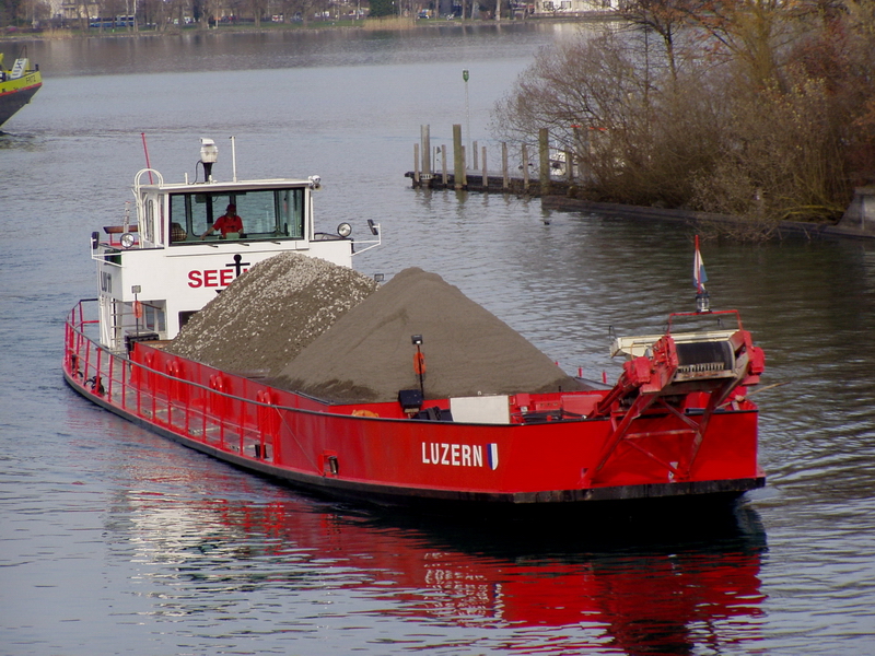 Die LUZERN ist 1886 von Escher-Wyss in Zürich als Trajekt-Schiff für den Thunersee erbaut (BB II) und 10 Jahre später nach Luzern überführt worden (D.G.V. 2). Dort transportierte das Schiff bis in die 1920-er Jahre fünf oder sechs SBB-Güterwagons an diverse Gestade am Vierwaldstättersee. 1930 wird es an die Seeverlad + Kieshandels AG Luzern (heutige SEEKAG) vermietet und zwei Jahre später durch diese für 40 000 Franken erworben. Das Schiff wird weiterhin als Eisenbahnfähre verwendet. 1963/64 erfolgt ein Totalumbau, die Geleise und die Dampfmaschine werden ausgebaut. Das Trajektschiff wird zum selbstentladenden Kiestransportschiff mit einer Tragkraft von 320 Tonnen und Dieselmotorantrieb umgebaut1 und erhält den Namen LUZERN (LU 11). Auffällig war das markante Steuerhaus im Bug. Die LU 11 kenterte 1970 bei der Wegfahrt vom Bagger in Flüelen und wurde daraufhin erneut umgebaut. Nun wurde der legendäre, 136-jährge Nauen Luzern 2018 in Flüelen abgewrackt. Zwei Jahre zuvor hatte er noch eine Zulassung für eine Tragkraft von 190 t (statt wie bisher 270 t) erhalten. Der Nauen prägte über Jahrzehnte das Stadtbild von Luzern – er war ein fleissiger Zubringer von Sand, Kies und Schotter zum Luzerner Seeverlad und zum Betonwerk hinter der SGV-Werft. Quellen: