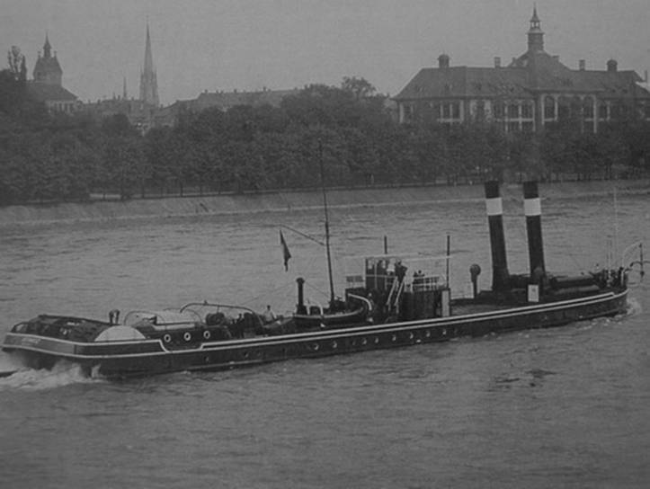 Come soci ed investori della cooperativa figuravano i cantoni di Basilea città, Basilea campagna, altri 14 cantoni, le ferrovie svizzere e circa altre 75 imprese private provenienti dal commercio e dell'industria. Particolarmente da evidenziare sarebbe l'associazione dell'azienda della distribuzione del gas, la quale aveva sottoscritto gran parte delle partecipazioni e piazzato perecchi incarichi di trasporto alla giovane impresa. Come primo presidente era stato incaricato il giuridico, politico e consigliere nazionale dott. Paul Speiser. Inizialmente la cooperativa si occupava esclusivamente della navigazione fluviale sul fiume Reno, la prima nave d'altura era stata aquisita appena nel 1935. Il 01-07-1919 erano stati insediati i primi uffici "am Blumenrain 16" a Basilea con 9 impiegati (sottostante il hotel "Drei Könige" sulla sponda sinistra del fiume Reno). Per il primo periodo era stato esercitato il trasporto con chiatte noleggiate e fino alla fine del 1919 sono state trasportate circa 250'000 tonnellate di merci, prevalentemente carbone e granaglie. Il primo direttore era Louis Groschupf*) e Jules Ott**) un ingegnere navale, era il primo dirigente del reparto tecnico. Si occupava anche per l'ingaggio di adatti rimorchiatori e chiatte, probabilmente un compito difficile imminentemente dopo la fine del primo conflitto mondiale. Il membro del governo dott. R. Miescher, direttore dell'azienda della distribuzione del gas, facente parte della delegazione di controllo finanziario della SSG sass, era del parere di introdurre persone giovani nella cooperativa e nel 1922 era stato assunto nell'azirnda l'economo, dott. Nicolas Jaquet (1898 - 1986). Già nel 1925 era diventato direttore e fino al suo pensionamento nel 1966 svolgeva fedelmente questo compito. Il dott. Jaquet era colonello nell'arma dell'esercito e consigliere nazionale per Basilea città nel parlamento a Berna. Il "dottore", come apparentemente veniva chiamato all'interno da alcuni collaboratori, sicuramete aveva reso ottime prestazioni, d'altra parte però era anche una personalità contestabile. Nel 1938 la "Schweizerische Schleppschiffahrtsgenossenschaft" (nel linguaggio dialettale chiamata anche "Schleppi") era stata convertita in una società per azioni prendendo il nome di Schweizerische Reederei AG, Basel (SRAG). Nel 1975 la Schweizerische Reederei AG fusiona con la Neptun Reederei AG formando la Schweizerische Reederei und Neptun AG (SRN). La cooperatva Migros, l'ultima grande azionaria, nel febbraio del 2000 si separa dalle sue azioni della Schweizerischen Reederei e Neptun AG. La SRN era stata assorbita dal gruppo tedesco Rhenus. 1. Navigazione fluviale sul fiume Reno Agli inizi i trasporti erano stati organizzati con delle chiatte a noleggio, però già nel corso del primo anno dalla fondazione era stato aquistato un rimorchiatore a vapore con ruota a pale sistemata a poppa dal cantiere Cäsar Wollheim di Breslau-Cosel sul fiume Oder. Il rimorchiatore era stato battezzato SCHWEIZ e attraverso fiumi e canali trasferito a Duisburg sul Reno. SCHWEIZ era il primo natante sul Reno sotto bandiera svizzera. Una prima chiatta-rimorchio era stata aquisita in Ollanda e nominata AARE. Il rimorchiatore a ruota a pale di poppa, aquistato nel 1919, era la prima rimorchiatore fluviale sotto bandiera svizzera (Foto: collezione U. Vogelbacher) Anche l'industria svizzera soffriva di mancanza di ordini e nel 1920 venivano commissionate 8 chiatte da rimorchio presso la ditta Buss AG di Pratteln. Questi mezzi erano stati costruiti in un cantiere di Augst nei pressi di Basilea. In collaborazione con Escher Wyss AG, Zurigo, nello stesso stabilimento era stato costruito il rimorchiatore ZÜRICH con ruote a pale laterali azionate da una turbina a vapore sistema Zoelly. Ulteriori chiatte da rimorchio seguirono negli anni successivi, queste però erano state aquistate all'estero. Dopodiche i tedeschi nel 1922 si rifiutavano di concedere i servizi di rimorchio alla SSG, venivano ordinati due rimorchiatori e cioè due mezzi a vapore con ruote a pale, BERN e LUZERN. Il BERN era stato costruito dalla ollandese Maschienfabriek en Scheepswerf P. Smit Jun., Rotterdam e consegnato nella primavera del 1923. Con 1480 Cv era il mezzo con la maggiore potenza. Anche il LUZERN era stato consegnato nel 1923. Con la costruzione era stato incaricato il cantiere Gebrüder Sachsenberg AG di Rosslau sul fiume Elba ed aveva una potenza di 1200 Cv. Dando un'occhiata nell'elenco della flotta della SSG, si nota, che sono elencate parecchie peniche (mezzi da trasporto su canali), e cioè per un particolare motivo. Negli anni venti vari tratti del fiume Reno ancora non erano stati canalizzati e così spesso la navigazione doveva essere sospesa quando il livello dell'acqua del fiume era basso. Un'ostacolo veramente insidioso e pericoloso erano le rapide della solca di Istein, circa 10 km oltre Basilea, spesso erano transitabili solamente con un pescaggio minimo ed inoltre il passagio necessitava una grande potenza di proulsione. Dopo le negative esperienze sul fiume dei primi anni, nel 1923 ci si rammentava del canale Reno-Rodano fino a Hüttingen e così parte del traffico era stato trasferito su questo canale. Negli anni seguenti erano state aquistate 12 peniche da canale da circa 300 tonn. di portata. Le peniche inizialmente erano state trainate da muli ed il viaggio da Stassburgo a Basilea durava 8 giorni, più avanti, quando l'amministrazione francese aveva installato dei binari lungo il canale, e le chiatte venivano trainate da locomotive, la durata del tragitto si era all'incirca dimezzato. La SSG manteneva persino dei muli propri. Alla fine degli anni 20, anche nella navigazione fluviale subentra la motorizzazione con motori Diesel e veloci chiatte motorizzate iniziavano a trasportare merce varia. In correlazione a questo evento, a Buchs viene fondata una piccola impresa di spedizione. Siccome il consume di combustibili liquidi era aumentato di parecchio anche