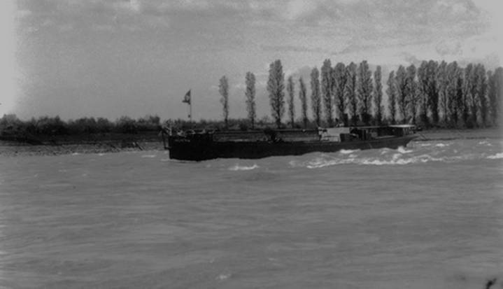 La solca di Istein in piena il 26 dicembre 2012. La chiusa di Kembs si trova sulla sponda opposta dietro la boscaglia (Foto archivio SwissShips) La soglia di Istein con bassa il 8 settembre 2011. Oggi la maggior parte dell'acqua passa nel canale laterale, ma una parte e l'acqua eccedente viene scaricata nei pressi di Märkt. La soglia di Istein ha una pendenza di circa 2 metri (foto archivio SwissShips) Nel 1937 la SSG iniziava di installare dei motori della Gebr. Sulzer di Winterthur sui vecchi rimorchiatori-chiatte trasformandoli in mezzi autopropulsi. Nel seguente anno, le due chiatte RHONE e TICINO erano state trasformate ed equipaggiate con 2 motori e 2 eliche. Nello stesso periodo era stato trasformato in batello a motore Diesel il ZÜRICH, un batello con ruota a pale progettato dall'ingegnere navale svizzero dott. Adolf J. Rynker, e così duplicata di oltre il doppio la potenza, altri mezzi seguivano. Dopo le ottime esperienze fatte con i motori Diesel della Sulzer, la società ordina tre grandi rimorchiatori Diesel dal cantiere Jos. Boel et Fils, Tamise, Belgio. Nuovamente era stato incaricato A. Rynker con la progettazione e pianificazione dei mezzi. Inizialmente il progetto era stato nominato "Super-Kongo" per non intimidire la concorrenza. Questi mezzi erano URI, consegnato nel 1939, poco prima dell'inizio del secondo conflitto mondiale, SCHWYZ e UNTERWALDEN, consegnati nel 1948 e 1949 a fine conflitto. Questi tre mezzi concepiti per eseguiri lunghi viaggi erano i rimorchiatori più potenti sul fiume Reno, l'incoronamento dei rimorchiatori-chiatte. All'inizio della seconda guerra mondiale, la navigazione sull'alta parte del fiume Reno era stata sospesa fino a marzo del 1941. Fortunatamente la società aveva inviato le chiatte verso valle, potendo operare tra i porti marittimi ed il porto fluviale di Mannheim sul Reno. Dalla primavera 1941 all'autunno 1944, la flotta della SRAG aveva contribuito un enorme prestazine a rifornire la Svizzera con carbone, dato che i tedeschi il trasporto del carbone lo facevano dipendere dalla disponibilità di chiatte svizzere. Le ferrovie erano ostacolate fortemente con le loro capacità dovuto al caos della guerra. Verso valle era stato trasportato minerale di ferro ricavato dal Gonzen (una montagna al confine con il Liechtenstein) e dalla valle Frick esportandolo nel "Ruhrpott" (comglomerato industriale nei paraggi del fiume Ruhr). Nel ottobre del 1944 per causa della guerra, la navigazione sul Reno era stata sospesa e se c'era alcuna possibilità fatte rientrare a Basilea le chiatte in servizio. Gli equipaggi, ora disocuppati, e specialmente i giovani apprendisti in corso di formazione erano stati impiegati in due fattorie a Langenbruck, di proprietà della società armatrice, finche a fine aprile del 1946 la navigazione sul fiume era stata riattivata. A fine conflitto, nel 1945 la via d'acqua doveva essere liberata da ponti crollati e naviglio affondato, un lavoro lungo e faticoso. Dopo la guerra, pian piano il carbone veniva sostituito da carburanti liquidi, inoltre incrementava drasticamente il traffico automobilistico, ciò comportava un'aumento di richiesta di mezzi da trasporto petroliferi. La flotta della compagnia era stata ampliata adeguatamente. Inizialmente 8 bettoline di buncheraggio della Wehrmacht, erano state aquistate dalla Royal Navy, nominadole CISALPINA 1 fino a 8. Queste chiatte autopropulse di solito rimorchiavano un'altra bettolina. Nel 1956 era stato intrapreso un enorme rinnovamento della flotta, il capitale azionario doveva essere stato portato da 6 a 16 milioni di Franchi Svizzeri. Sono stato commissionati 10 grandi chiatte della classe "Strom" con una portata di 1650 tonn. ed una potenza di 2 x 600 Cv, 6 unità più piccole da 720 tonn. destinate al trasporto di merce varia e altre chiatte. Il primo mezzo della classe "Strom" era stato intromesso nel servizio nel 1957 e con i due verricelli da rimorchio era in grado di rimorchiare altre due chiatte. Dal 1963, le chiatte della classe "Strom", erano state provviste con dei dispositivi a prua per poter spingere altre chiatte, cioè fissarle a prua, aumentando così la capacità. Questa serie composta da 12 unità (chiamate brevemente SSL) era molto efficace. Ogni SSL era in grado di trasportare 1000 tonn. di carico con una sola persona al comando. Con un "Navigatore-Schottel" era possible manovrare nei porti senza alcuna assistenza. Tuttavia, la SRAG non aveva mai messo in servizio un mezzo che era destinato esclusivamente a spingere delle chiatte (una specie di rimorchiatore che spinge), dato che i rischi erano stati considerati troppo grandi per la navigazione sulla parte a monte del Reno. In tale periodo cadono anche i primi tentativi con il Radar e mezzi di communicazione via radio, una tecnica che dopo poco tempo era impensabile non averla a bordo. Un'altro tentativo con le cosidette chiatte articolate era stato intrapreso nel 1961. Prima era stata trasformata la EDELWEISS 10, seguito dalla EDELWEISS 15, venivano tagliate a metà, allungati i due tronchi ed acoppiati come chiatta e bettolina. Secondo le note coppie sfortunate, la prima era stata battezzata TRISTAN e ISOLDE, la seconda ROMEO e JULIA. Così il tentativo ovviamente inadeguato era stato abbandonato e non più seguito. Nel febbraio del 1956 erano stato messe in servizio sotto bandiera austriaca 2 motochiatte sul Reno, la AUSTRIA 1 e AUSTRIA 2. Questi due mezzi erano di proprietà della Rohner, Gehrig & Cie. A.G. di Vienna, una affigliata della SRAG. Più avanti erano state aggiunte altre 6 chiatte. Tra l'altro erano stati assunti mozzi austriaci per formarli nell'arte della navigazione fluviale. A quei tempi ancora si sperava di far navigabile il tratto del Reno fino al Bodensee. La società poteva convincere marittimi svizzeri di fungere come padroncini, ciò significa, il marittimo diventava padrone (o armatore) della chiatta comprandola, per poi lavorare per la società con il mezzo aquistato. Parla