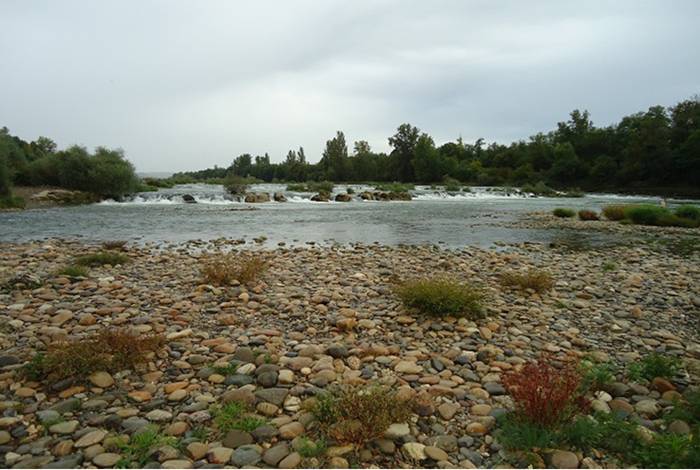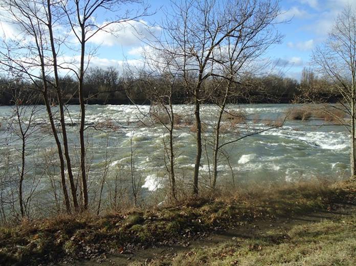 the first ship of the new After the war the Swiss industry also suffered from lack of work and in 1920 orders were placed with the company Buss AG, Pratteln (close to Basel) to construct 8 barges. These barges were built on a building site in Augst, about 10 km upriver from Basel. In collaboration with Escher Wyss AG, Zürich a side paddle tug was constructed on the same site. The tug was powered by a steam turbine, system Zoelly. Other tug boats and barges were added in the following years, but these were purchased from abroad. After the German shipping companies refused in 1922 to give further towing services to the SSG, two side paddle tugs, the BERN and LUZERN were ordered. The BERN was built by Machinefabriek en Scheepswerf P. Smit Jr., Rotterdam and was delivered in spring 1923. She was with 1480 iHP the strongest unit. The LUZERN was also delivered in 1923. She was constructed on the river Elbe by Gebrüder Sachsenberg AG, Rosslau (Sachsenberg Brothers Ltd) and had 1200 iHP. When studying the fleet of SSG, you may observe, that comparatively many spits (in French: péniche, French for canal barge) are listed. This has a special reason. In the twenties the upper Rhine was not yet channelled and shipping frequently had to be suspended due to low water. An especially insidious and dangerous obstacle were the rapids, called the Isteiner Schwellen, approximately 10 km below Basel, which often could be navigated with only a minimal draft and required high engine power. After the bad experiences on the Rhine during the early years, the old French Rhine-Rhone Canal to Hüningen (opposite the port of Basel on the French side) was considered as an alternative in 1923 and shipping was transferred party to this canal. In the years to come, 12 spits of about 300 tonnes were acquired. In the beginning these were towed by mules and the trip from Strasbourg to Basel took about 8 days. Later the French administration installed rails along the canal and the barges were now towed by electrical locomotives, reducing travel time to Basel by about half. The SSG even had its own stock of mules. At the end of the twenties the diesel engine appeared in river shipping and fast motor vessels commenced to transport general cargo. In this context a small forwarding company was founded in 1934 in Buchs SG (at the border to Liechtenstein, where the main railway line to Austria leaves Switzerland). When consumption of liquid fuel increased considerably in Switzerland, the SSG founded in 1935 the Tankreederei AG, which for liability reasons operated as an independent company. First two Rhine barges were converted to tank barges, but also canal tank barges were taken into service. When the locks of Kembs opened in Mai 1932, allowing to circumnavigate the rapids of the Isteiner Schwellen, as well as the improvements made to the river above Strasbourg, these had a favourable effect on the business of the SSG, for the first time a dividend could be paid in 1935 to the share holders. Despite this, the Canal of Hüningen was still used and in 1935 more then one million tonnes of goods were shipped to Basel. The Isteiner Schwelle in 1927 with the cargo vessel HELVETIA of J. H. Koenigsfeld, Rotterdam (Photo Archiv SwissShips) The rapids of the Isteiner Schwelle on 26.12.2012 during high water. The locks of Kembs are behind the forest on the opposite bank (Photo Archiv SwissShips) The Isteiner Schwelle on 08.09.2011 during low water. Today the largest part of the water flows through the lateral Rhein Canal, but some portion of water, especially during high water is led at the barrage of Märkt into the original river bed. The Isteiner Schwelle has a drop of approximately 2 m (Photo Archiv SwissShips) In 1937 the SSG commenced to convert the old barges, constructed in Augst, into motor ships, installing Diesel engines from Sulzer Brothers, Winterthur. A year later the large, 1300 tonnes barges RHONE and TICINO were equipped each with two diesel engines and two propellers. In the same time the steam paddle wheel tug ZURICH was converted to diesel power, using drawings from the famous Swiss naval architect Dr. Adolf J. Ryniker. The power output was more then doubled, other tug boats followed. After these favourable experiences with diesel power, three large diesel tugs were ordered from the Belgian shipyard of Jos. Boel et Fils, Tamise. The construction plans were again provided by A. Ryniker. In the beginning the project was launched under the name "Super-Congo" to keep the competitors calm. These tugs were the URI, delivered in summer 1939, shortly before the outbreak of the war. The SCHWYZ and the UNTERWALDEN were completed and delivered only after the war, 1948 and 1949 respectively. These so-called "long-haul tugs" were the strongest tug boats on the Rhine, the ultimate achievement in river towing. At the outbreak of the WW II shipping on the upper part of the Rhine was suspended until March 1941. Fortunately most ships were ordered downriver already in August 1939 and were able to trade from the sea ports until Mannheim. From spring 1941 until autumn 1944 the river fleet of the SRAG contributed considerably to the supply of coal to Switzerland. The Germans demanded from Switzerland to make their own means of transport available for these deliveries. The capacity of the railways was seriously reduced due to effects of the war, therefore the more valuable became river shipping. On the voyage downstream the barges carried iron ore from the Gonzen (a mountain in the East of Switzerland) and from the Fricktal (near Basel) to the "Ruhrpott", the industrial area around Duisburg. Again, in October 1944 all shipping came to an end as a result of the war actions and whenever possible the ships were ordered back to Basel. The now redundant barge crews, especially the deck boys, serving their apprenticeships, were now employed on two SRAG owned farms in Langenbruck (in the hills South of Basel) until shipping was resumed end of Ap