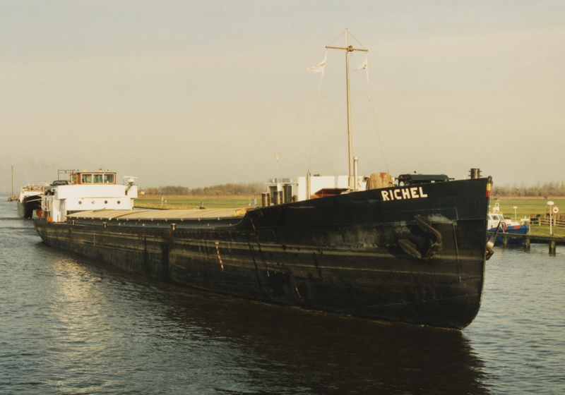 Gebaut als ASCONA für die Basler Rheinshiffahrt A.G. (BRAG), Basel bei Jos. Boel & Fils in Tamise mit der Bau Nr.: 1138 und am 09.04.1947 in Fahrt gekommen unter dem Kommando vom Schiffer Rinus van de Toren. Die Pläne von diesem Schiffstyp (Gandria-Klasse) stammen vom Schweizer Schiffbauingenieur Adolf J. Ryniker. Es wurden 6 Baugleiche Schiffe mit Tessiner Namen gebaut. 4 davon in den Niederlanden bei N.V. Scheepsbowwerf Vorheen De Groot & Van Vliet in Slikkerveer. Im August 1968 Ankauf durch die Aare-Hochrhein Schiffahrt A.G., Holderbank und in AARAU umgetauft. Am 06.10.1972 verkauft an Hendriks, Hendrik Ido-Ambacht neuer Name DEL CASSIA. Register Nr.: 2313615. Ab 27.10.1972 für H. van Veen aus Zwolle als DEL CASSIA in Fahrt. Verkauft am 29.10.1974 an Rheintrans BV, Rotterdam, neuer Name LOTUS. Ab 13.12.1974 für P. H. Lischer aus Maastricht als SPARTIVENTO in Fahrt. Am 16.06.1980 verkauft an Adrianus Pols, Antwerpen umbenannt in RICHEL. Register Nr.: 6001825. Wahrscheinlich im Mai 1990 neu motorisiert. Neue Ps Anzahl: 547. Neu vermessen mit 815 Tonnen bei einem Tiefgang von 2.83 Meter. Im Jahr 2009 bei Treffers BV in Haarlem verschrottet.