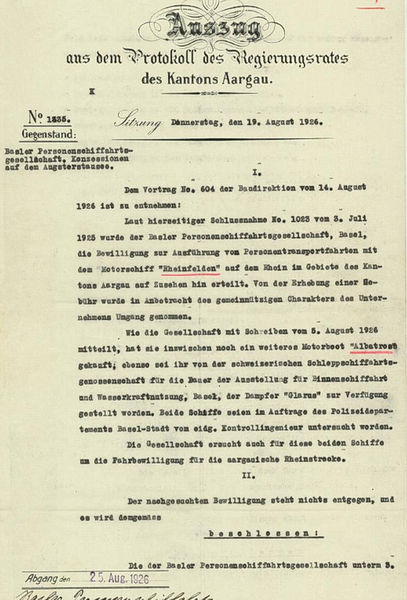 | Eigner / Registered owner: | Basler Personenschiffahrtsgesellschaft (BPSG), Basel | ||