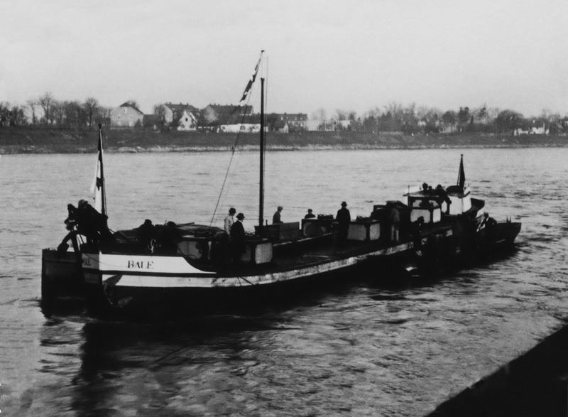 1925 von der Basler Rheinschiffahrt A. - G. (BRAG), Basel bei der Schiffswerft Chantier Naval de Rupelmonde in Rupelmonde, Belgien bestellt als Benzintransport Kanaltankschiff. 1925 als BALE vom Stapel gelaufen und im selben Jahr an die Eigner abgeliefert. Das Löschen der Ladung erfolgte durch eine Dampfpumpe, die von Land oder einer Dampfboot gespeist wurde. Der Name Bâle ist die französische Bezeichnung für Basel. Verkauft am 21.06.1929 an Phs. van Ommeren’s Scheepvaartbedrijf NV in Rotterdam und registriert für die Internationale Riviertankscheepvart Maatschaappij (Intritas) in Rotterdam. Register Nr.: 4095. Nicht umbenannt. Durch diesen Verkauf ihrer 4 Tankpénichen (BALE, BOUJEAN, GENEVE und STRASBOURG) an Phs. van Ommeren, wurde die BRAG vertraglich verpflichtet sich in Zukunft aus Benzin- und Heizöltransporte über viele Jahre herauszuhalten. Der Gewinn dieses Verkaufs der 4 Pénichen war nahezu das gesamte Aktienkapital der BRAG. Im Zweiten Weltkrieg wurde die Tankpéniche durch Kriegsgewalt stark beschädigt. Nach dem Krieg repariert und wieder in Dienst gestellt. Am 30.06.1959 ausser Dienst gestellt. Verkauft am 18.07.1959t an N.V. Petroleum Producten Rotterdam (PPR) in Rotterdam für den Einsatzt als stationäre Bunkerstation, Lagerschiff für Gasöl und als Verkaufsstelle für Schiffsartikel. Am 20.09.1973 verkauft und verschrottet. |