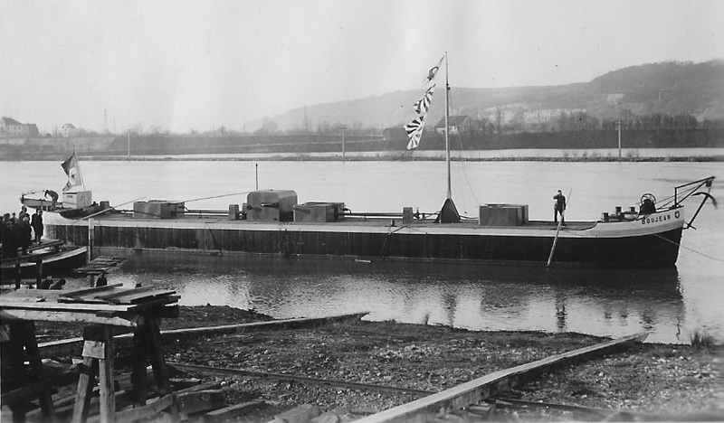 1925 von der Basler Rheinschiffahrt A. - G. (BRAG), Basel bei der Buss A.-G. Schiffswerft in Kaiseraugst als Benzintransport Kanaltankschiff bestellt. Am 13.01.1926 als BOUJEAN vom Stapel gelaufen. Abgeliefert Ende Januar 1926. Das Löschen der Ladung erfolgte durch eine Dampfpumpe, die von Land oder einer Dampfboot gespeist wurde. Der Name Boujean ist die französische Bezeichnung für das 1917 in die Stadt Biel / Bienne eingemeindete Bözingen und ist die Herkunft der BRAG Gründungsfamilie Ritter. Verkauft am 21.06.1929 an Phs. van Ommeren’s Scheepvaartbedrijf NV in Rotterdam und registriert für die Internationale Riviertankscheepvart Maatschaappij (Intritas) in Rotterdam. Register Nr.: 4098. Nicht umbenannt. Durch diesen Verkauf ihrer 4 Tankpénichen (BALE, BOUJEAN, GENEVE und STRASBOURG) an Phs. van Ommeren, wurde die BRAG vertraglich verpflichtet sich in Zukunft aus Benzin- und Heizöltransporte über viele Jahre herauszuhalten. Der Gewinn dieses Verkaufs der 4 Pénichen war nahezu gleichviel Wert wie das gesamte Aktienkapital der BRAG. Am 03.06.1953 an den niederländischen Rijkswaterstaat verkauft. Viele Pénichen, die 1953 an den Rijkswaterstaat verkauft wurden, waren nun dazu gedacht, die Hauptstromöffnung bei Schelphoek auf der Südseite von Schouwen auf der Insel Schouwen-Duivenland zu schliessen. Dieser grosse Wasserdurchbruch entstand nach der Flutkatastrophe in den Niederlanden vom Februar 1953. Zu diesem Zweck wurden die Pénichen auf der Werft HVO in Vlaardingen Ost in einen Senkkasten umgebaut. Het Gat van Schelphoek (Watersnoodramp 1953) | Binnenvaart PortaalAm 28.06.1956 an H. P. & C. D. Heuvelman in Krimpen a/d Ijssel verkauft und neu registriert unter der Register Nr.: 9636 B Rotterdam 1956 als BOUJEAN. Am 01.08.1956 weiterverkauft an J. H. Ooms in Streefkerk. Nicht umbenannt. Weiterverkauft am 25.09.1956 an Scheepswerf en Gashouderbouw v/h Jonker & Stans NV in Hendrik Ido Ambacht. Nicht umbenannt. Am 14.06.1983 aus dem Register gestrichen und wahrscheinlich verschrottet. |