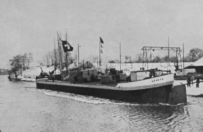 1925 von der Basler Rheinschiffahrt A.- G. (BRAG), Basel bei der Buss A.-G. Schiffswerft in Kaiseraugst als Benzintransport Kanaltankschiff bestellt und am 22.01.1926 als GENEVE vom Stapel gelaufen. Abgeliefert am 30. Januar 1926. Das Löschen der Ladung erfolgte durch eine Dampfpumpe, die von Land oder einer Dampfboot gespeist wurde. Verkauft am 21.06.1929 an Phs. van Ommeren’s Scheepvaartbedrijf NV in Rotterdam und registriert für die Internationale Riviertankscheepvart Maatschaappij (Intritas) in Rotterdam. Register Nr.: 4096. Nicht umbenannt. Durch diesen Verkauf ihrer 4 Tankpénichen (BALE, BOUJEAN, GENEVE und STRASBOURG) an Phs. van Ommeren, wurde die BRAG vertraglich verpflichtet sich in Zukunft aus Benzin- und Heizöltransporte über viele Jahre herauszuhalten. Der Gewinn dieses Verkaufs der 4 Pénichen war nahezu das gesamte Aktienkapital der BRAG. Am 03.06.1953 an den niederländischen Rijkswaterstaat verkauft. Viele Pénichen, die 1953 an den Rijkswaterstaat verkauft wurden, waren nun dazu gedacht, die Hauptstromöffnung bei Schelphoek auf der Südseite von Schouwen auf der Insel Schouwen-Duivenland zu schliessen. Dieser grosse Wasserdurchbruch entstand nach der Flutkatastrophe in den Niederlanden vom Februar 1953. Zu diesem Zweck wurden die Pénichen auf der Werft HVO in Vlaardingen Ost in einen Senkkasten umgebaut. Het Gat van Schelphoek (Watersnoodramp 1953) | Binnenvaart Portaal Am 15.06.1956 an H. P. & C. D. Heuvelman in Krimpen a/d Ijssel verkauft und gleich weiterverkauft an J. H. Ooms in Streefkerk. Neuer Name HENNIJ. (Register Nr.: 9609). Andere Quellen geben den Namen HENNY. Am 28.07.1956 weiterverkauft an Tankbedrijf Amsterdam NV in Amsterdam. Nicht umbenannt. Ankauf am 04.12.1956 durch die Rubber Cultuur Maatschappij Amsterdam NV, Amsterdam. Nicht umbenannt. Am 21.05.1957 aus dem NL Register ausgetragen, das lässt vermuten, dass das Schiff ausserhalb der Niederlanden in Surinam eingesetzt wurde. Leider ist darüber nichts mehr bekannt. Andere Quellen geben aber auch an, das Schiff sei in den Niederlanden verschrottet worden. Seit dem 21.05.1957 ist der Verbleib weiterhin unklar.