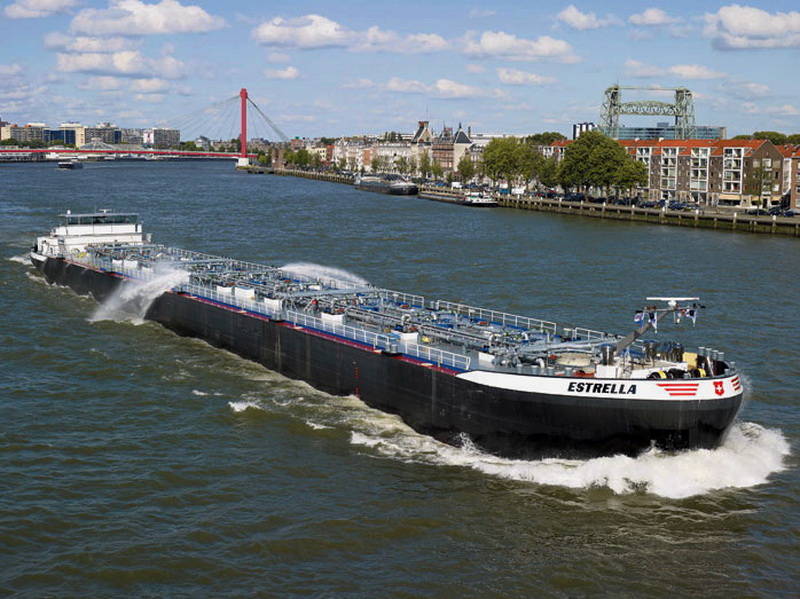 Der Rumpf wurde bei Jiangsu Sugang Shipbuilding Co. Ltd., Yizheng (Bau Nr.: 07STIG078) in der Volksrepublik China gebaut, kam mit der Hochseebarge "Sainty 10" nach Rotterdam und wurde bei der Schiffswerft Trico Shipyard BV ausgebaut. Die erste Probefahrt fand am 23.08.2010 unter niederländischer Flagge mit dem Rufzeichen PB7138 statt. Getauft am 28.08.2010 auf den Namen ESTRELLA durch Frau Renata Goyvaerts und für die Estrella Shipping AG aus Hergiswil in Fahrt gekommen. Registriert in Basel am 15. September 2010 mit der Register Nummer 1930. ENI Nr.: 02333428. Das Schiff war bei seiner Registrierung mit seinen 6'305 Tonnen Tragfähigkeit das zweitgrösste Binnenmotortankschiff unter Schweizerflagge. Dusche auf Tanker in Brand geraten Die Feuerwehr Rotterdam mit einem Löschfahrzeug sowie die Schlepper "RPA 2", "RPA 11" und "RPA 16" der Hafenbehörde kamen am 16.11. 2014 dem Schweizer Binnentanker "Estrella", 6305 ts (EU-Nr.: 02333428), zu Hilfe, auf dem am Propaan-Weg in Rotterdam ein Feuer ausgebrochen war. Es war durch einen Kurzschluss in einem Duschraum entstanden. Es gelang den Einsatzkräften, die Flammen rasch zu löschen. Anschließend wurden die Wohnräume des 135 Meter langen Schiffes belüftet. (Quelle: Tim Schwabedissen, 17.11.2014). Am 18.11.2022 aus dem Schweizer Rheinschiffsregister gestrichen.