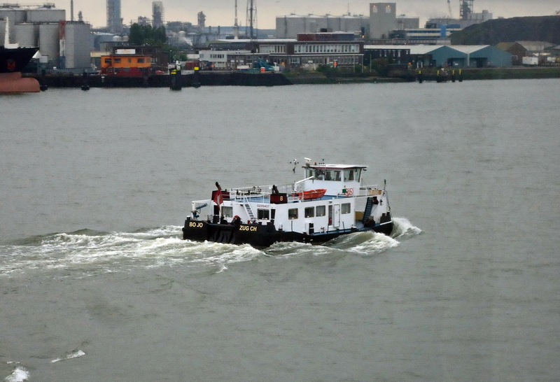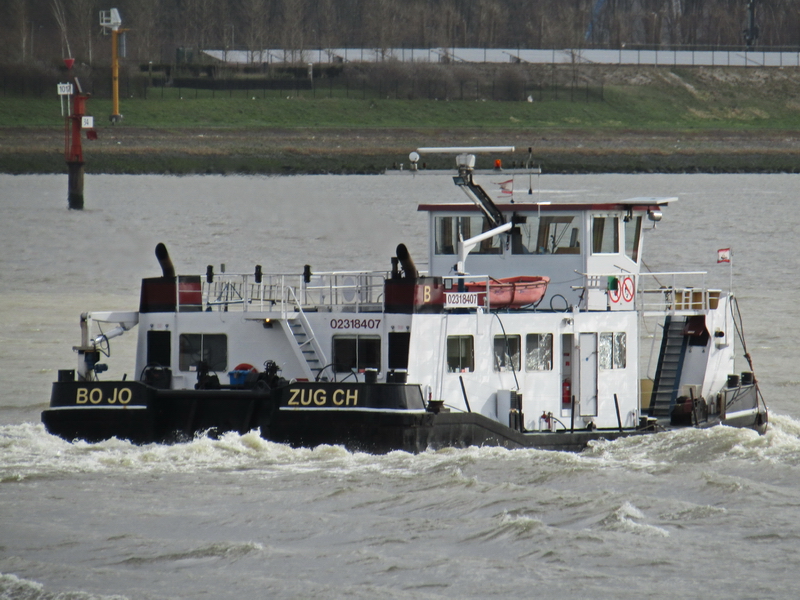 Rotterdam am 09.03.2020 mit dem Heimathafen Zug, der fälschlicherweise am Schiff angebracht wurde. Richtigerweise müsste da Basel als Registerhafen stehen / Rotterdam on 9 March 2020 with the home port of Zug, which was incorrectly affixed to the ship. Basel should correctly be listed as the port of registry