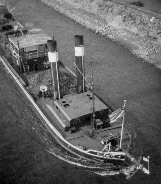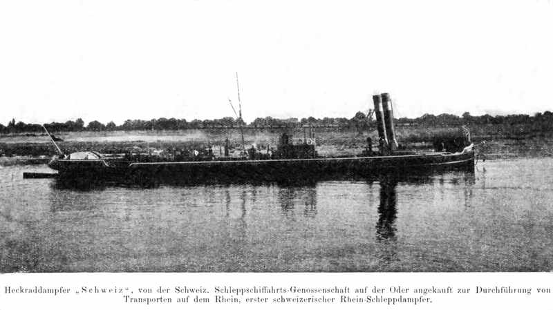 Gebaut als C. W. VIII bei Caesar Wollheim, Werft und Rhederei, Cosel bei Breslau. Im Oktober 1919 Ankauf durch die Schweizer Schleppschiffahrtsgenossenschaft (SSG) aus Basel und umbenannt in SCHWEIZ. Am 1. November 1919 zwischen Duisburg und Strassburg in Dienst gestellt. Ab dem 21. Mai 1924 im neu errichteten Schweizer Rheinschiffahrts Register als Nr. 4 registriert. Laut Bericht von damals: "Es ist gelungen auf der Werft von Cäsar Wollheim in Breslau einen neuen Hinterraddampfer von 750 Ps zu erwerben und in abenteuerlicher Fahrt über Flüsse, Kanäle und der offenen Nordsee zwischen der Elbe- und der Wesermündung, auf den Rhein zu überführen. Er wird auf den Namen SCHWEIZ getauft und ist der erste Schlepper der am Heck die Schweizer Flagge führt". Im Jahr 1927 an die Weser verkauft zur Bremer Schleppschiffahrt in Bremen. Neuer Name DEUTSCHLAND. Im September 1938 Verkauf an Dampfergenossenschaft deutscher Strom- und Binnenschiffer in Fürstenberg an der Oder. Im Juni 1945 von der Sowjet Union übernommen. Verbleib unbekannt.