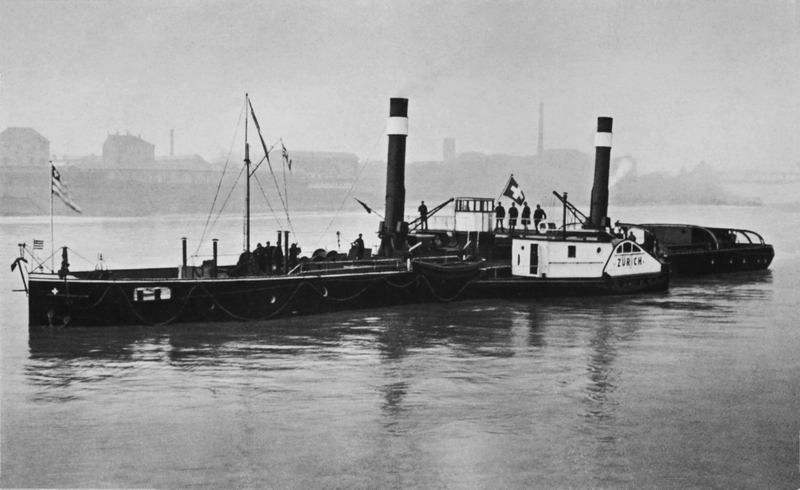 Auf Kiel gelegt nach Plänen von Escher, Wyss & Cie., Zürich bei der Schiffswerft Buss A.G. in Kaiseraugst im Mai 1921. Vom Stapel gelaufen als ZÜRICH am 10. August 1921 ohne Radkästen, da sonst zu breit um die Schleuse Augst zu Passieren. Danach im Vorhafen der Schleuse Augst in Augst nach weiteren Arbeiten am Rumpf, der Montage der Maschinenanlage und der Radkästen, fertiggestellt. Als erster Flussdampfer mit Turbinenantrieb und Getriebe im Juni 1922 in Fahrt gekommen unter dem Kommando von Kapitän Anton Platz, aus Rheindürkheim. Von der SSG definitiv übernommen im Jahre 1923 nach Behebung der sogenannten "Kinderkrankheiten" am Schiff. Am 21. Mai 1924 offiziell im Schweizerischen Rheinschiffsregister in Basel eingetragen mit der Register Nummer 5. 1937 Umbau nach Plänen von Schiffbau Ing. Adolf J. Ryniker bei der Gutehoffnungshütte Sterkrade AG, Werk Sterkrade, Abteilung Rheinwerft Walsum, zum 2’400 Ps starken Dreischrauben Dieselschlepper. Neue Abmessungen: Länge: 64,03m, Breite: 7,92m, Tiefgang: 1,60m. Maschinenleistung 3 x 800 (2'400) Ps. Maschinentyp: 7TS29 Gebr. Sulzer AG Winterthur. Beim Umbau musste ein grosser Teil des Achterschiffes abgetrennt werden und durch ein neu gebautes Hinterschiff mit Tunnelheck ersetzt werden, ebenso mussten alle Aufbauten eine Änderung erfahren. In Betrieb genommen am 10.01.1938 als erste Dreischrauben Motorschleppboot auf dem Rhein und war zu der Zeit auch die stärkste Boot auf dem Rhein. Die Probefahrt führte nach Düsseldorf.