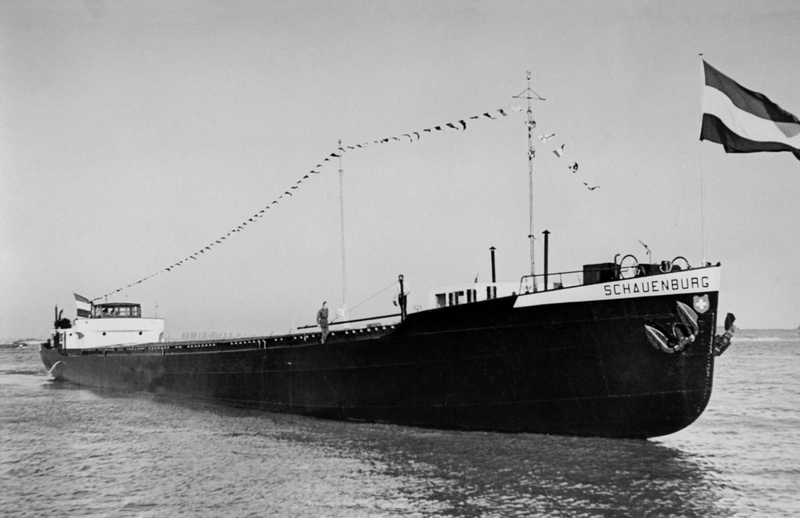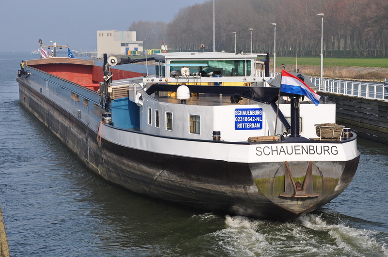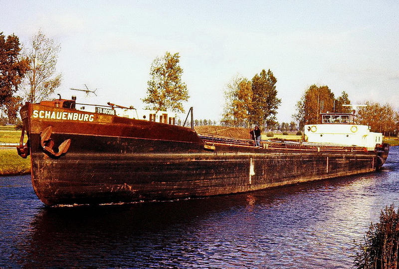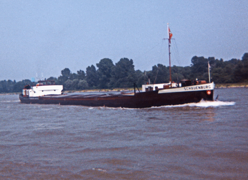 Die Kiellegung (Bau Nr.: 436) der SCHAUENBURG war am 5. April 1948 bei der Schiffswerft N.V. Scheepswerfen v/h H. H. Bodewes in Millingen a/d Rijn. Der Stapellauf und Taufe durch die Taufpatin Frl. Trudy Knapp fand am 10. Juli 1947 statt. Die Probefahrt und Abnahme durch die "St. Johann" Lagerhaus- und Schiffahrtsgesellschaft (SILAG) Basel war am 2. Oktober 1948. Für den Einbau der beiden Sulzer Maschinen (Zylinder Nr.: 25642-45 & 25646-49) war der Sulzer Monteur Schönbächler zuständig. Das Gütermotorschiff (GMS) ist entstanden nach den Projektplänen vom Ingenieur-Bureau Dr. h. c. Ryniker Basel. Die Bauaufsicht übernahm Fred Bösch aus dem Planungsbüro Ryniker. CH-Register Nr.: 396. Der Name Schauenburg stammt von 2 Burgruinen bei Frenkendorf im Kanton Basel-Landschaft. Wahrscheinlich wurde die SCHAUENBURG im Jahre 1980 an N. Knieriem im Miet-Kauf übergeben. Daraufhin erhielt das Schiff auch ein neues Luken Dach, das einfacher zu handhaben war. Am 09.07.1982 offiziell verkauft an N. Knieriem in Rotterdam. Nicht umbenannt. Reg. Nr.: n.a. Schon am 12.07.1982 neu registriert in Basel für die MS Schauenburg Schiffahrts AG, Basel unter der CH-Rheinregister Nummer 1364 (IVR Nr.: 7001364). 1982: Umgebaut, verlängert (84.70 x 8.53 x 2.79) und neu motorisiert mit 2 x 550 Ps / (405 kW) starken Volvo Penta (TAMD 162 A) Dieselmotoren. Neue Tragfähigkeit 1307 Ton. 1988 für N. Knieriem in Rotterdam registriert. Reg. Nr.: 2318642 2001 wurde in Koźle, (früher Cosel/Schlesien) an der Oder, ein neues Vor- und Mittelschiff gebaut. Die weitere Fertigstellung war bei Jooren in Werkendam. Neu vermessen mit 110.00 x 9.50 x 3.00 und 2087 Ton. Tragfähigkeit. Ebenfalls wurden 2 neue Maschinen vom Typ Baudouin mit je 750 Ps eingebaut. Nun registriert in Barendrecht. MMSI: 244100549 / Rufzeichen: PF8813. Das alte Vor- und der Mittschiffsteil wurde am Achterschiff der DIANA (IVR NR.: 2316211) ex GRAUBÜNDEN angebracht. Zurzeit (23.03.2023) noch in Fahrt.