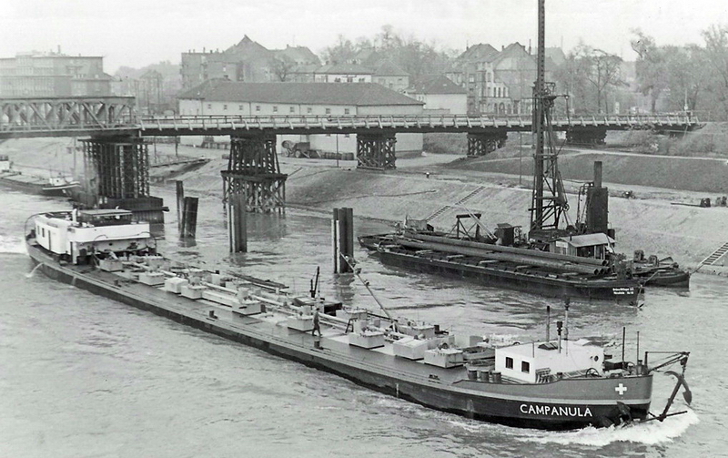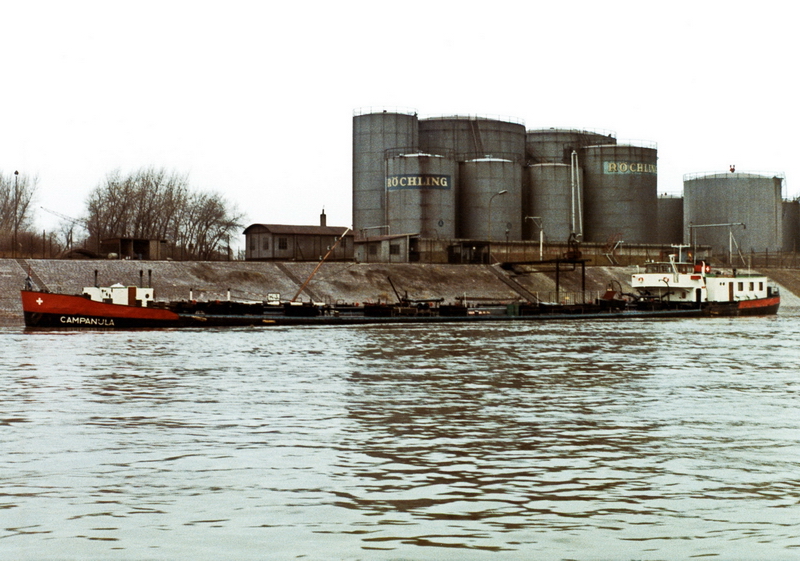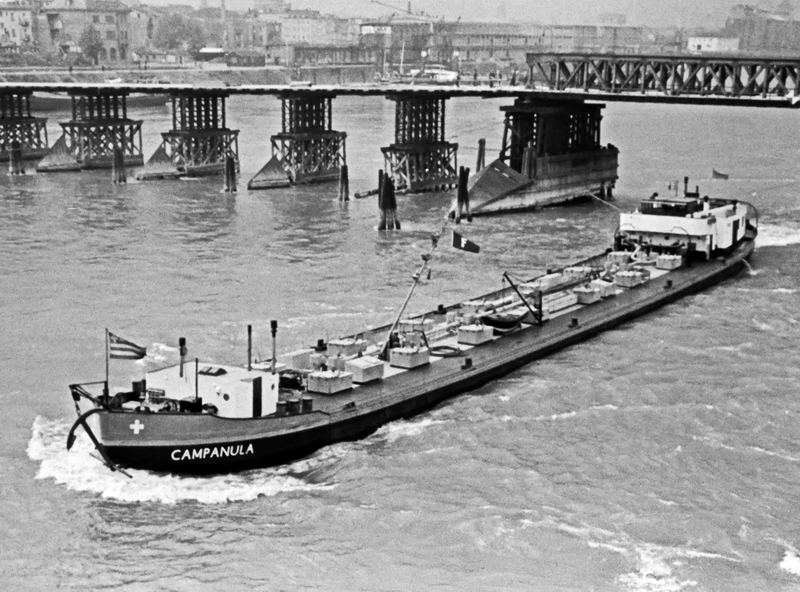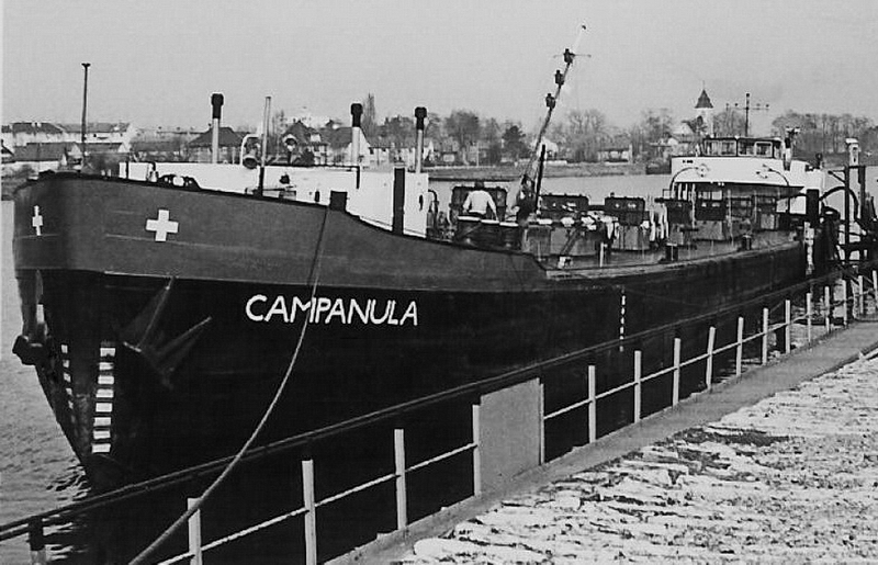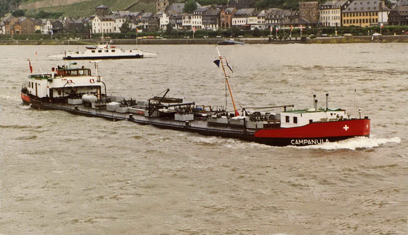 Gebaut als CAMPANULA bei Jos. Boel & Fils SA, der damaligen Hauswerft der Schweizerischen Reederei AG für die Cisalpina Reederei für Tanktransporte A. G., Basel. Am 30.12.1948 war die Probefahrt und Ablieferung. Benannt nach der Glockenblume (Campanula), die laut Wikipedia in europäischen Hochgebirgen (Alpen, Kaukasus) in besonders vielen Arten vorkommt, die nur dort zu finden sind. Im Jahre 1961 Übertragen an die Schweizerische Reederei AG (SRAG), Basel. Ab dem 23.06.1975 heisst der Eigner nun Schweizerische Reederei und Neptun A. G. (SRN), Basel. Ab dem 01.01.1976 führt das TMS nun die europäische IVR-Register Nr.: 7000410. Am 08.12.1983 verkauft an Alpina Scheepvaart Maatschappij BV in Rotterdam. Später im Dezember weiterverkauft für 280'000 Hfl. an C. J. Blokzijl, Terneuzen und in SALLY umbenannt. Reg. Nr.: 2317181. 1990 Verkauft an Scheepsslooperij "Nederland" BV in s'Gravendeel zum verschrotten. Quellen: