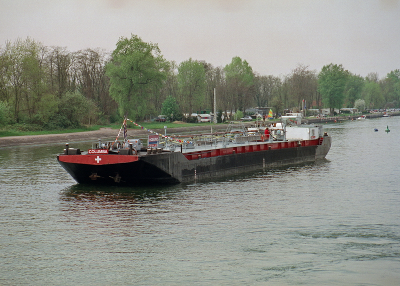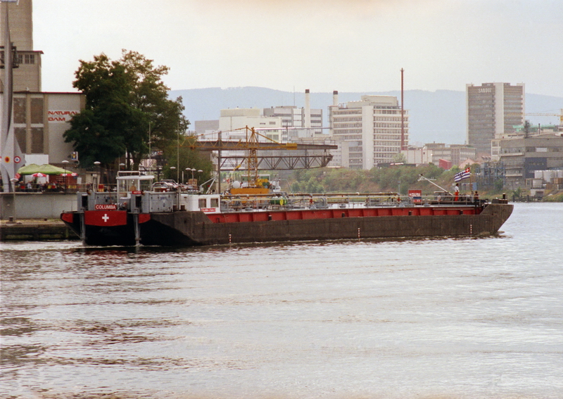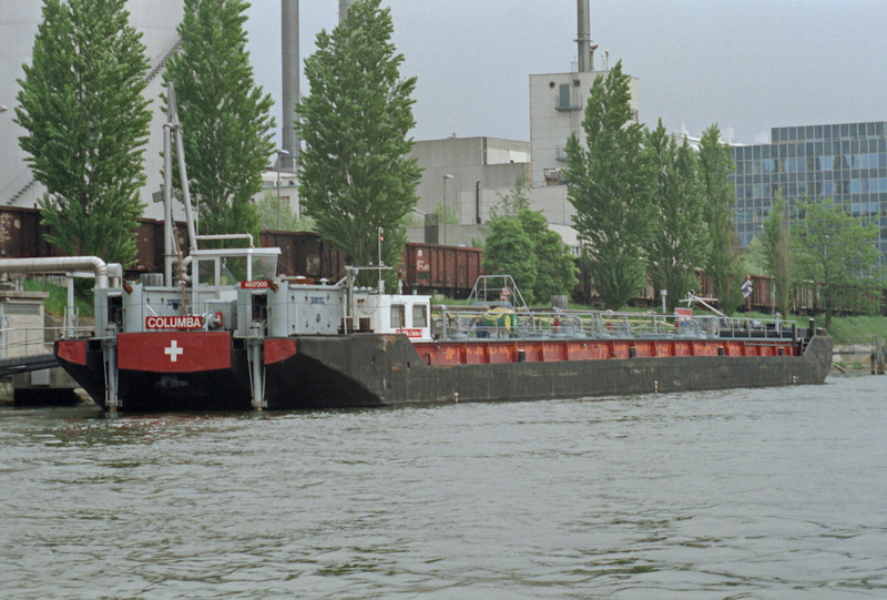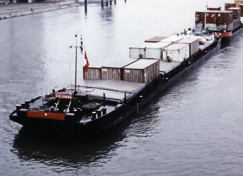 Dieser so genannte SSL - Schlepp-Schubleichter COLUMBA, mit 997-ton Tragfähigkeit wurde 1963 gebaut von J.G. Hitzler Schiffswerft & Maschinenfabrik in Lauenburg an der Elbe (Bau Nr.: 663) für die Columba Schiffahrts GmbH. in Lübeck. Management: Schweizerische Reederei A.G. (SRAG) Basel. Register Nr.: 1071. Im Laufe der Zeit mit einem Roll Lukendach ausgerüstet. 1966: Angekauft durch die Edelweiss Reederei A.G. Basel. Management: Schweizerische Reederei A.G. (SRAG) Basel und in der Schweiz Registriert. Register Nr.: 706. Nicht umbenannt. 1968 übertragen an die Schweizerische Reederei A.G. (SRAG), Basel. Ab dem 23.06.1975 heisst die Firma nun Schweizerische Reederei und Neptun A.G. (SRN), Basel. 05.02.1991: Umbaut zum TMS für Schmutzwassertransport der chemischen Industrie. Neu Motorisiert mit 2 Schottelantrieben mit 2 6-Zylinder Maschinen vom Typ MAN D2866 E. 324kw / 441Ps. Neu vermessen mit 451-ton Tragfähigkeit. 17.12.1991: Verkauft an Alpina Rheinkontor GmbH. (Management: Schweizerische Reederei und Neptun A.G. (SRN), Basel), Ludwigshafen. Register Nr.: 4607200. Am 22.01.1999 in den Niederlanden zur Abwrackung vorgelegt. Verkaufspreis 1,6 Millionen CHF. Quellen: