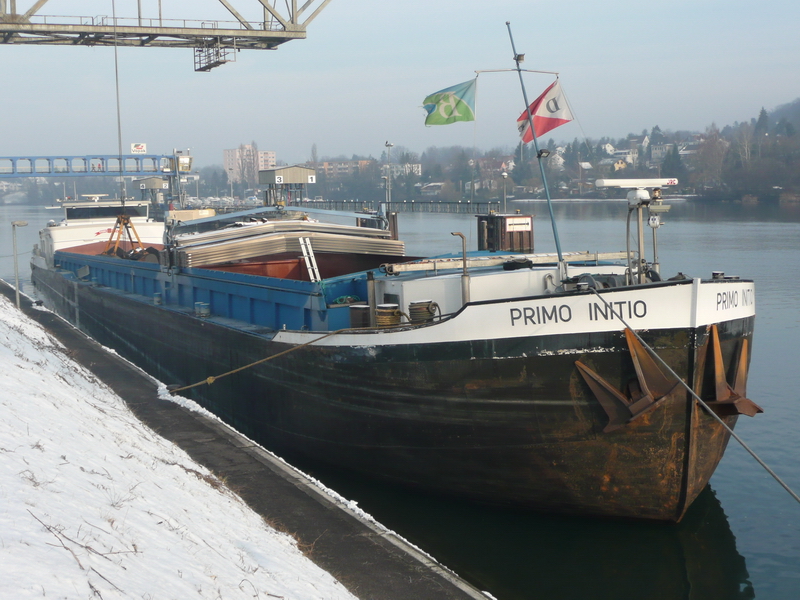 Construit en 1939/40 par le chantier naval belge Jos. Boel & Zonen Scheepsbowwerf Temsche / Jos. Boel & Fils Chantiers Navals, Tamise (n° de construction : 1009) comme chaland (bateau du Rhin) MESOCCO. Mesocco est une commune politique de la partie italophone du canton des Grisons, en Suisse. Elle est également appelée Misox en allemand et Mesauc en romanche. La partir arrière de la coque était initialement construite pour permettre une motorisation ultérieure sans trop de transformations. Le bateau faisait partie de la série dite « Combi » ou « Italienne », en raison de son nom tessinois. Le chaland a été livré en 1940 à la société propriétaire, la N.V. Nederlandsch-Zwitsersche Scheepvaart Maatschappij à Rotterdam. N° de registre : 6282 B Rott. 1940. Enregistré le 27-03-1946 à Bâle pour la société propriétaire, la Schweizerische Reederei AG (SRAG). En 1946, deux moteurs, 6 RKWN 25, Sulzer Diesel construits en 1940 ont été installés à Bâle et le GMS a été mis en service le 26-08-1946. Numéros des blocs-cylindres : R 23894-99 ; L 23900-905. Les arbres d'hélice, paliers de suspension et hélices ont été montés à Tamise. Vendu le 04-09-1973 à P. Hendricks, Schiffsmakler à Hendrik Ido Ambacht, aux Pays-Bas. 1973 : revendu à Van Der Waarde à Rotterdam et rebaptisé LIBRA. N° d'immatriculation : 13925 B Rott 1973. A partir du 01-01-1976, le chaland porte le n° de registre IVR 2313925. 1977 : Vente à la Harm BV à Rotterdam, sans changement pas de nom. 1977 : Achat par la C. Buitendijk Rederij BV Hendrik Ido Ambacht, sans changement de nom. 1989 : Vendu à la A.G. J.M. Wanders, Gorinchem. Nouveau nom : AMON. 1993 : Vendu à la Drenth, Maassluis et rebaptisé PRIMO INITIO. D'autres sources indiquent comme propriétaire Primo Initio Vof à Maassluis. En 2006, le navire est transformé : une partie des cales et l'entier de la poupe sont reconstruits. Les nouvelles dimensions sont les suivantes : 85.90 x 9.48 x 2.91m. La capacité de charge passe à 1'604 tonnes. La nouvelle motorisation est de type Cummins de 1'600 CV. Traduction PAR/2024