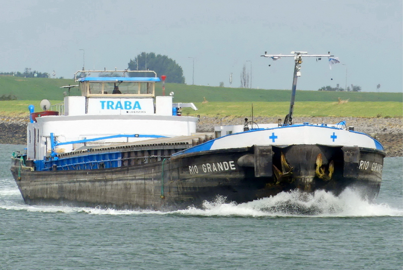 03.12.1971 Umgebaut zum Schub-Gütermotorschiff und mit 2 Schubschultern und Winden zum Koppeln ausgerüstet. Neu vermessen mit 1'595 Tonnen Tragfähigkeit. Am 23.06.1975 wird der Eigner Name in Schweizerische Reederei und Neptun AG (SRN) Basel geändert, nach der Fusion mit der NEPTUN Reederei AG Basel. 01.01.1976: IVR-Nummer: 7000572. 10.04.1986 verkauft via Alpina Rotterdam an Scheepvaartonderneming Maxandu, Hellevoetsluis, neuer Name ADDIO. Register Nr.: 2009348. Verkaufspreis 318'100 HFL. Laut IVR 1992 Registerort Amsterdam. Im Internet gibt es aber ein Bild von dem Schiff mit Heimathafen Rotterdam? 1989 verkauft an H.C.J. van de Wijgaart, Hellevoetsluis und in JASMIJN umbenannt. Andere Quellen (debinnenvaart.nl) geben Heimathafen Nijmegen an. Im IVR 1992 wird als Eigner van Deurzen & v/d Wijgaard aus Hellevoetsluis angegeben. Binnenvaart 1991 von W. van Heck & A. M. van Zanten, gibt als Eigner Maxandu Scheepvaartonderneming BV, Hellevoetsluis an. 1993 neu motorisiert mit 2 - 825 Ps starken Detroit Diesel vom Typ 16 V 92 TA. Als Eigner wird nun H. C. J. v/d Wijgaart in Nijmegen angegeben. Das Schiff fährt meistens Container und nimmt 108 TEU mit. 2007 wird als Eigner Jasmijn Vof in Schiedam aufgeführt. Das Schiff fährt meistens Container und nimmt 108 TEU mit. 2017 gibt binnenvaart.eu einen Verkauf an Traba Logistics in Beuningen bekannt und Umbenennung wiederum in RIO GRANDE. Die Plattform debinnenvaart.nl gibt einen unbekannten Eigner wechsel im Jahre 2019 bekannt. 2020 wird darin einen Verkauf an die Rio Grande Traba Logistics (Johan de Bot) in Beuningen angegeben. 2019 wiederum neu motorisiert mit 2 x 500 Ps starken Scania Diesel vom Typ DI 13. Im Jahre 2022 erhielt die RIO GRANDE ein neues Vor- und Mittelschiff (Ladung) und einen 400 Ps starken DAF-Bugstrahler. Neu vermessen mit 85.70m x 11.11m und einer Tragfähigkeit von 1'907 Tonnen. Rufzeichen: PH7849. |