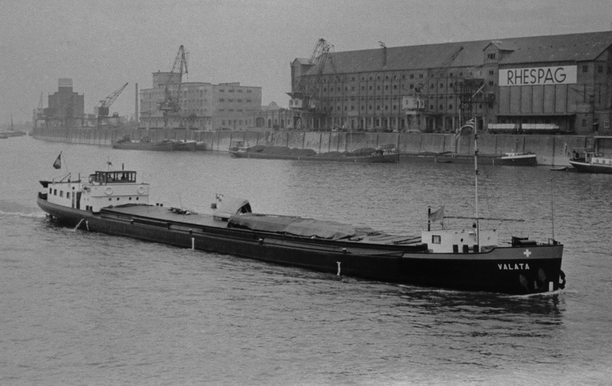 Gebaut als VALATA (Bau Nr.: 274) für Alpina Reederei AG Basel bei der Schiffswerft N.V. Scheepsbowwerf Vorheen De Groot & Van Vliet, Slikkerveer. Am 16.11.1949 in Fahrt genommen. Register Nr.: 425. Valata ist ein Weiler in der Gemeinde Obersaxen Mundaun im Kanton Graubünden in der Schweiz. 1951: Übertragen an die Schweizerische Reederei AG (SRAG) Basel. Am 14.02.1956 verkauft an Rohner + Gehrig Schiffahrts- & Speditions AG (Management: Schweizerische Reederei AG Basel) Wien und in AUSTRIA 1 umgetauft. Register Nr.: 931. Im Januar 1971 verkauft an Schweizerische Reederei AG (SRAG) Basel. Neuer Name VALENDAS. Benannt nach der Bündner Gemeinde Valendas. Am 23.06.1975 wird der Eignername in Schweizerische Reederei und Neptun AG (SRN) Basel geändert, nach der Fusion mit der NEPTUN Reederei AG Basel. 01.01.1976 IVR Nr.: 7000785. Am 14.07.1980 verkauft an J. J. C. Buitink aus Stellendam, registriert in Rotterdam. Neuer Name NAUTILUS. Register Nr.: 2316104 und mit 825 Tonnen neu vermessen. 1991 verkauft an J. Wagter, Hoogvliet neuer Name JACOWA. Registriert in Rotterdam. 1994 neu motorisiert mit einem 680 Ps starken Caterpillar Diesel und einem 220 Ps starken DAF Bugstrahler. Tiefgang 2.77m. Neu geeicht mit 810 Tonnen Tragfähigkeit. 2005 Verschrottet bei Auto- en Scheepssloperij Treffers B.V. in Haarlem. |