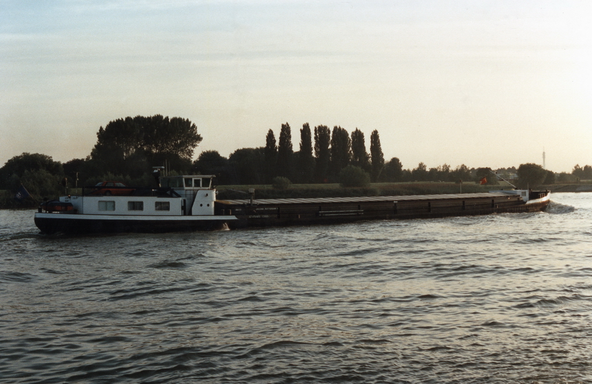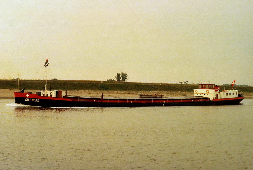 Gebaut als VALATA (Bau Nr. 274) für Alpina Reederei AG Basel bei der Schiffswerft N.V. Scheepsbowwerf Vorheen De Groot & Van Vliet, Slikkerveer. Am 16.11.1949 in Fahrt gekommen. Register Nr.: 425. 1951: Übertragen an die Schweizerische Reederei AG (SRAG) Basel. Am 14.02.1956 verkauft an Rohner + Gehrig Schiffahrts- & Speditions AG (Management: Schweizerische Reederei AG Basel) Wien und in AUSTRIA 1 umgetauft. Register Nr.: 931. Im Januar 1971 verkauft an Schweizerische Reederei AG (SRAG) Basel. Neuer Name VALENDAS. Benannt nach der Bündner Gemeinde Valendas. Am 23.06.1975 wird der Eignername in Schweizerische Reederei und Neptun AG (SRN) Basel geändert, nach der Fusion mit der NEPTUN Reederei AG Basel. 01.01.1976 IVR Nr.: 7000785. Am 14.07.1980 verkauft an J. J. C. Buitink aus Stellendam, registriert in Rotterdam. Neuer Name NAUTILUS. Register Nr.: 2316104 und mit 825 Tonnen neu vermessen. 1991 verkauft an J. Wagter, Hoogvliet neuer Name JACOWA. Registriert in Rotterdam. 1994 neu motorisiert mit einem 680 Ps starken Caterpillar Diesel und einem 220 Ps starken DAF Bugstrahler. Tiefgang 2.77m. Neu geeicht mit 810 Tonnen Tragfähigkeit. 2005 Verschrottet bei Auto- en Scheepssloperij Treffers B.V. in Haarlem. |