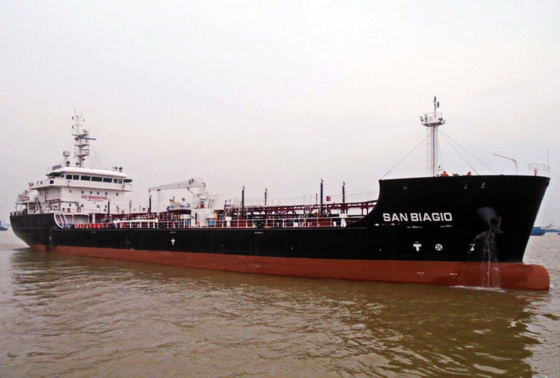 L‘impostazione della chiglia di questa asfaltiera / bitumiera (numero di costruzione: AD 0023) avviene presso il cantiere AVIC Dingheng Shipbuilding Co. Ltd., di Yangzhou, provincia Jiangsu (Repubblica Popolare Cinese) il 20-05-2015. Il varo come SAN BIAGIO avviene il 05-10-2015. Numero matricola: 9753820. Nominativo internazionale 9HA4020. Durante le prove in mare sul fiume Yangtze verso il mare aperto, la nave porta il nome ZHONG DING 21 con porto d’iscrizione Yang Zhou. La consegna alla proprietaria, la San Biagio Shipping di Valletta su Malta, avviene il 26-04-2016, con la gestione della nave si occupa la ABCmaritime di Nyon nel cantone Voud in Svizzera. Comunicato armatoriale: Siamo lieti di poter comunicare, che la proprietaria ha preso in consegna la seconda bitumiera, nominata SAN BIAGIO, il 26 aprile 2016 alle 16.15 ora locale nel porto fluviale di Jiandu, Cina. La SAN BIAGIO ha lasciato la Cina entro 24 ore ed è intenta di imbarcare il primo carico di olio di palma a Bintulu nella Malaysia, prima di dirigersi a Singapore per bunkerare. In seguito parte per la volta dell’Africa dell’Ovest, dove a metà giugno viene consegnata ai noleggiatori ad Abidjan. SwissShips MB, traduzione HM 06-04-2019 |