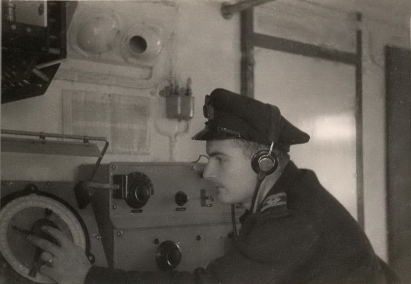 Offizier J. Voirol am Funkpeiler / Officer J. Voirol at the radio direction finder
