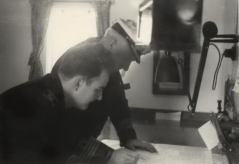 Kapitän mit dem wachhabenden Offizier im Kartenhaus / Captain with the officer on duty in the chart house