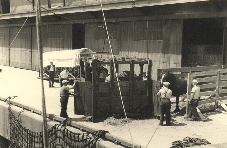 Die Pferde werden an Bord geladen / The horses are being loaded on board