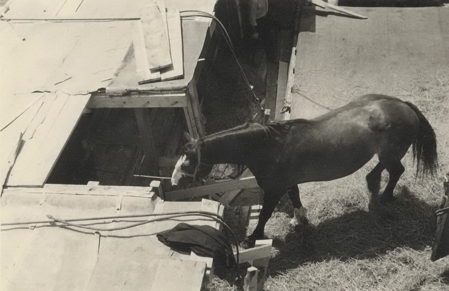 Vordeck voll mit lebenden Pferden als Ladung / Fore deck filled with live horses as cargo