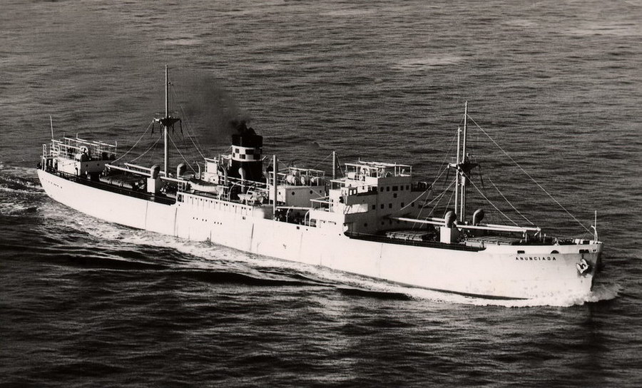 Mittschiffsansicht von oben von der beinahe voll beladenen ANUNCIADA / View from above of the midship section of the almost fully loaded ANUNCIADA