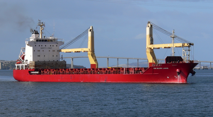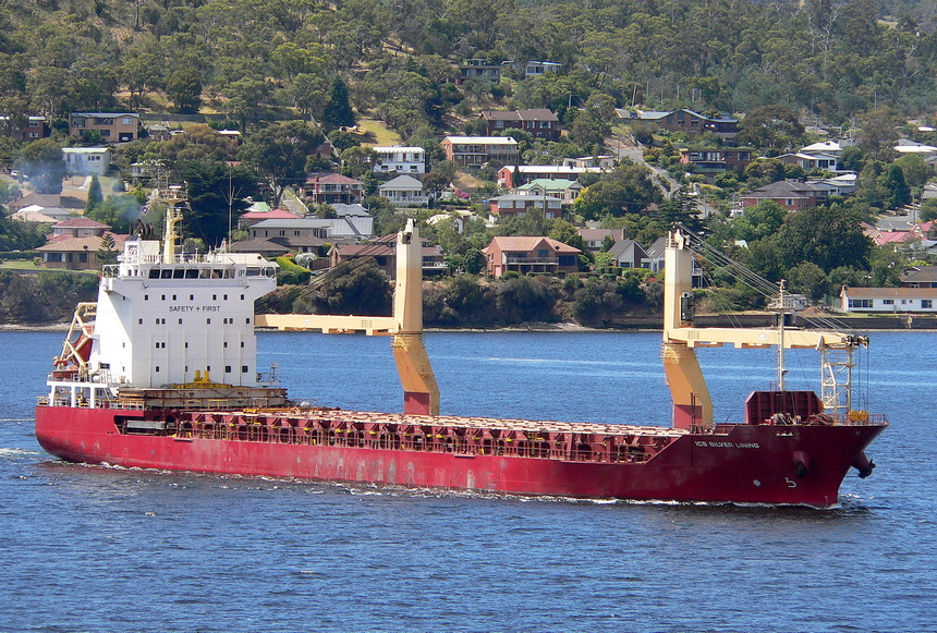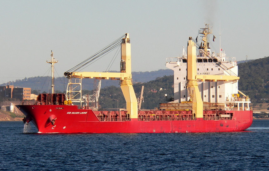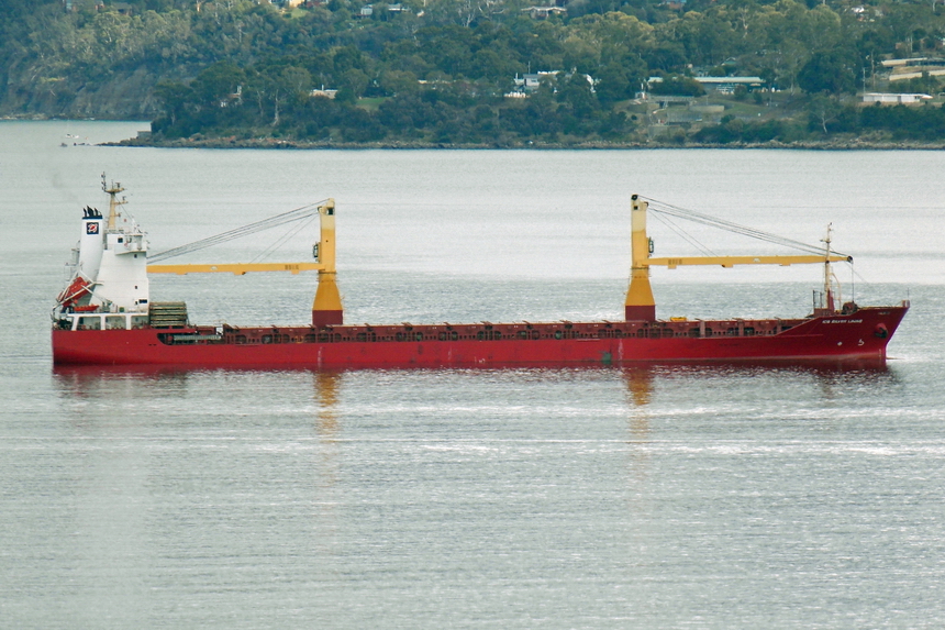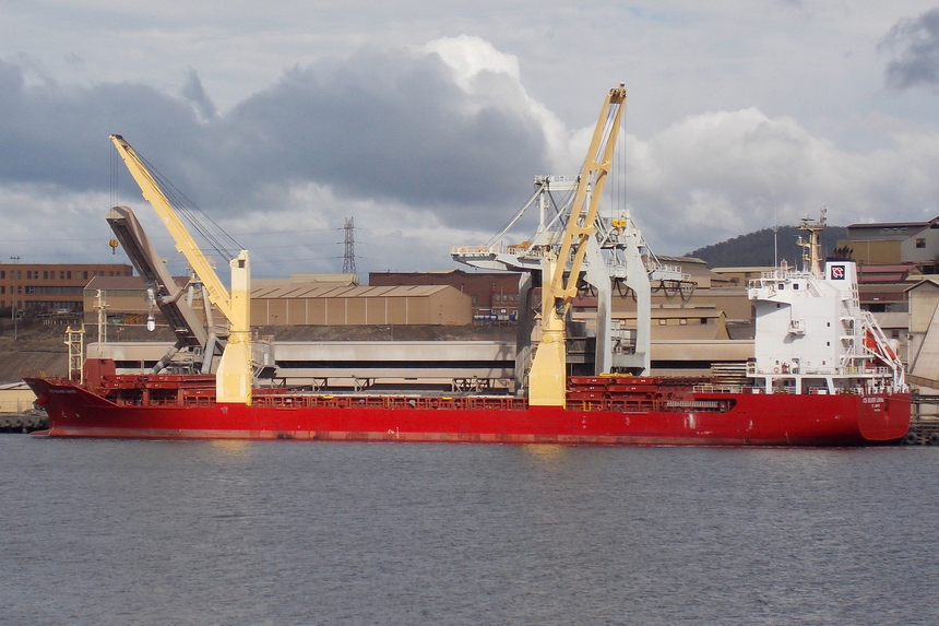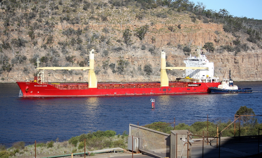 Arriving for the first time ever at the Nyrstar zinc processing plant at Risdon, on the River Derwent, near Hobart, Tasmania, Australia, on Easter Sunday, 31 March 2013
