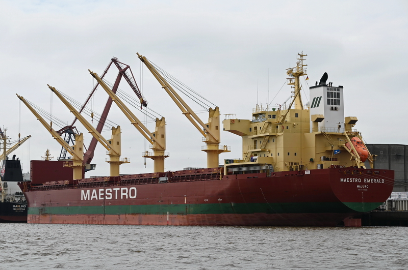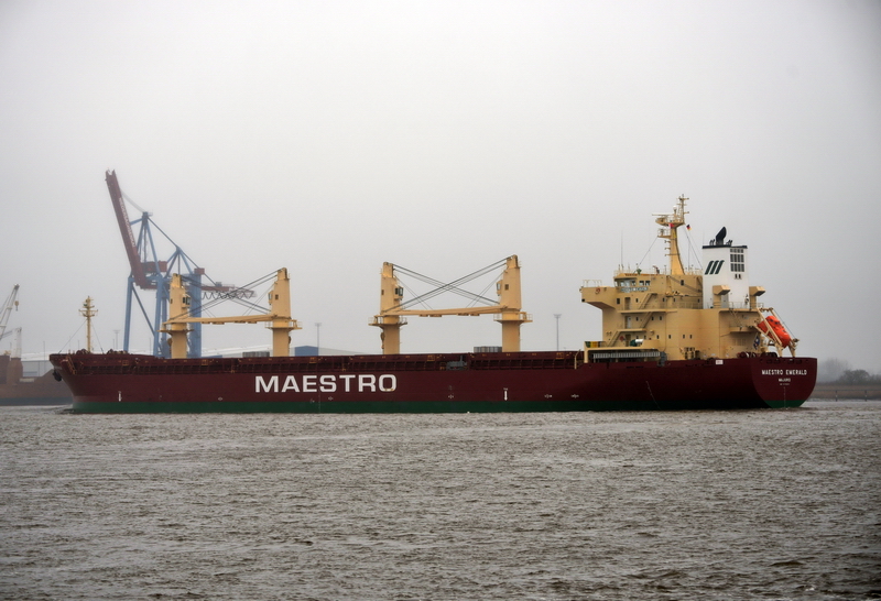 The keel of this so-called "Handysize" bulk carrier was laid at the shipyard Saiki Heavy Industries Co. Ltd. in Saiki, Ōita Prefecture in Japan on December 21, 2015. The launch as MAESTRO EMERALD did not take place until February 7, 2020. Unfortunately, we do not know why this long period of time occurred between the laying of the keel and the launch. The delivery to the owner company Maestro Emerald Incorporated took place on June 8, 2020. The bulk carrier sails under the flag of the Marshall Islands with the home port of Majuro. The official number is 8924, the callsign is V7A2913 and the IMO No.: 9758301. The commercial management is carried out by the parent company Maestro Shipping SA in Fribourg, Switzerland and Maestro Shipping A/S in Copenhagen and by the charter subsidiary T.K.B. Shipping A/S in Hellerup, Denmark. Maestro Shipmanagement Limited in Limassol on Cyprus is responsible for the technical management of the ships. Sources: