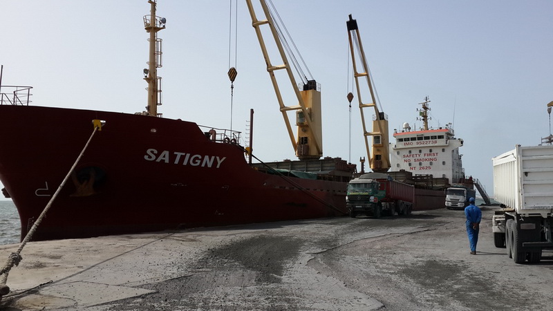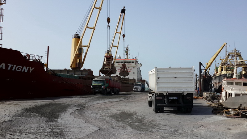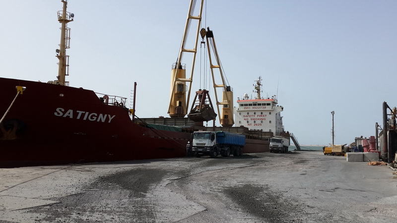 Löschen (Entladen) von Zementklinker in Nouakchott, Mauretanien / Discharging cement clinker at Nouakchott, Mauritania