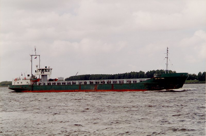 This river-sea ship was built in 1976 J. J. Sietas Schiffswerft, Hamburg-Neuenfelde (hull no.: 775) in 1976. Keel laid on 29.01.1976 and launched on 07.04.1976 as OSTEMAAT. Delivered on 11.05.1976 to the partner shipping company m.s. ‘Ostemaat’ (Management: Schiffahrtskontor Oste GmbH. & Co. K.G., Hemmoor, Germany), Hemmoor. Registered under German flag in Hemmoor, then as from 1982 in Hamburg (call sign: DIOM). After arriving in Rotterdam on 03.03.1986, the vessel was arrested on the order of a German bank and later acquired on 23.04.1986 by Captain Preisig for his company Toma Shipping Co Ltd (Jersey). The management was carried out by Paul Preisig, Herisau, Switzerland being registered under Bahamas flag in Nassau (Official No.: 708888, call sign: C6BW8). New name LAI DA TOMA (Lake Toma at the source of the Rhine). The LAI DA TOMA was a river-sea vessel with an extremely low air draft enabling her to pass under bridges and lock gates. This fact made it possible for the ship reach Basel with a partial load. In autumn 1991, the LAI DA TOMA made a voyage up the Rhone to Lyon. A tunnel boring machine was loaded in order to transport it to Krefeld (near Duisburg) (see also the report by Captain Peter Schickli and Fredi Sommer). Paris on the Seine was also called at several times. Many berths in the harbours of the Thames estuary fell dry at low tide and the freighter lay on the silt. However, with the air-cooled diesel generators from Deutz, it was possible to keep the ship running without any problems. In November 1989 Paul Preisig takes over Suisse-Outremer Reederei AG (Swiss Overseas Ship Management Corp), Zurich. The management of the LAI DA TOMA goes to Suisse-Outremer. Reported from Rotterdam 1. November 1989; sustained crack in bottom plating. Arrived Rotterdam on 3.12.1989 for survey and permanent repairs and sailed on December 8, 1989 for Ghent on completion. The vessel was sold on 22.09.1994 to Nephele Navigation Ltd (Management: Gido Lührs, Wischhafen, Germany), St. John's (Antigua & Barbuda). New name MARI GALANTE. New flag Antigua & Barbuda (Official No.: 2633, callsign: V2AU7). New tonnage GRT: 1721, NET: 719, DWT: 2554. 1996 renamed in LAGIK. In 2000 she was sold to L & L Shipping Ltd. (Management: Gido Lührs Schiffahrts K.G., Wischhafen), St. John's (Antigua & Barbuda), retaining the same name. On 13.12.2000, en-route from Mo i Rana, Northern Norway, the LAGIK she was due to discharge 2500 tonnes of steel in the port of Sutton Bridge, Lincolnshire. During the turning manoeuvre in Sutton Bridge in the narrow River Nene at 19:32 UTC, the vessel grounded with her bow and stern on both banks and jammed across the fairway. At 23:15 UTC as the tide was ebbing, the hull broke in two places causing the hold and the engine room to flood with water requiring the seven crew members to evacuate via a ladder at the stern. The ship was subsequently declared a total loss. The salvage company Smit Tak from Holland was commissioned to remove the wreck using the TAKLIFT I jack-up (2129 GRT/69). The hull, which had been broken in two separate areas, was cut into three parts and these were later cut into 20 tonne pieces. The stern was taken to Rotterdam and scrapped there. The wreck clearance was completed on 22.01.2001. LAGIK blocked the River Nene and the harbour of Wisbech for 44 days. SwissShips HPS / JTA December 30, 2024 Sources: