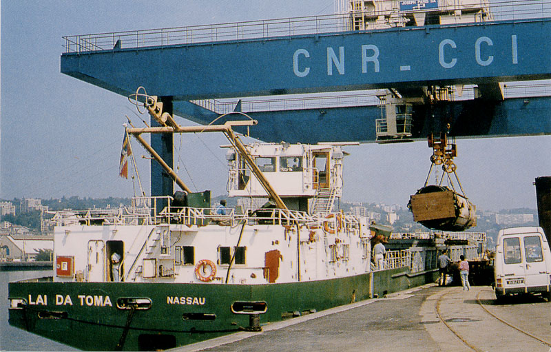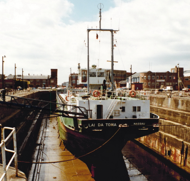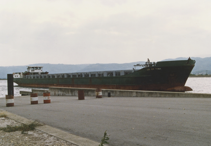 Ce bateau Rhin-Mer a été construit en 1976 par le chantier J. J. Sietas Schiffswerft, Hambourg-Neuenfelde (n° de construction 775). Mis en chantier le 29-01-1976 et lancé le 07-04-1976 sous le nom d'OSTEMAAT, ce navire a été livré le 11-05-1976 à la compagnie maritime partenaire m.s. "Ostemaat" (gestion : Schiffahrtskontor Oste GmbH. & Co. K.G., à Hemmoor, en Allemagne). Enregistré sous pavillon allemand à Hemmoor, puis à Hambourg en 1982 (indicatif d'appel DIOM). Arrivé à Rotterdam le 03-03-1986, le navire est "mis à la chaîne" sur ordre d'une banque allemande. Il est racheté le 23-04-1986 par le capitaine Preisig pour sa société, la Toma Shipping Co. Ltd (Jersey). La gestion est assurée par Paul Preisig, Herisau, Suisse. Il est enregistré sous pavillon des Bahamas à Nassau, sous le no. officiel 708888, l’indicatif d'appel C6BW8 et sous le nouveau nom de LAI DA TOMA (lac Toma, à la source du Rhin). Le LAI DA TOMA était un bateau Rhin / Mer d'un tirant d’air extrêmement faible, afin de pouvoir passer sous les ponts et les portes d'écluses. Le bateau pouvait monter jusqu’à Bâle avec un chargement partiel. En automne 1991, le LAI DA TOMA a remonté le Rhône jusqu'à Lyon. Un tunnelier a été chargé pour être transporté à Krefeld (près de Duisburg) (voir aussi le rapport du capitaine Peter Schickli ainsi que celui de Fredi Sommer). Il y a eu également de fréquentes escales à Paris, sur la Seine. De nombreuses places d'amarrage dans les ports de l'estuaire de la Tamise asséchaient à marée basse et le navire se retrouvait posé sur la vase. Les générateurs diesel à refroidissement par air de marque Deutz permettaient de maintenir sans problème les opérations à bord. En novembre 1989, Paul Preisig reprend la Suisse-Outremer Reederei AG (Swiss Overseas Ship Management Corp), Zurich. La gestion du LAI DA TOMA passe ainsi à la Suisse-Outremer. Une nouvelle de Rotterdam datant du 1er novembre 1989 annonce une fissure dans les fonds. Le navire arrive à Rotterdam le 3 décembre 1989 pour inspection ainsi que réparation, puis départ le 8 décembre 1989 pour Gand après les travaux. Vendu le 22-091994 à la Nephele Navigation Ltd (gestion par la Gido Lührs, Wischhafen, Allemagne), le navire est enregistré à St. John's (Antigua & Barbuda) sous le nouveau nom de MARI GALANTE, avec le numéro officiel 2633, l’indicatif d'appel V2AU7). Il est rejaugé avec un tonnage BRT de 1721, un NRT de 719 et un DWT de 2554. En 1996, il est rebaptisé en LAGIK. En 2000, le navire est vendu à la L & L Shipping Ltd (gestion par la Gido Lührs Schiffahrts K.G., à Wischhafen), enregistré à St. John's (Antigua & Barbuda) sans changer de nom. Le 13-12-2000, en provenance de Mo i Rana, au nord de la Norvège, le LAGIK devait décharger 2500 tonnes d'acier dans le port de Sutton Bridge, dans le Lincolnshire. Lors d’une manœuvre de retournement de 180° au bassin de rotation de Sutton Bridge, sur l'étroite rivière Nene, à 19:32 UTC, le navire s'est retrouvé avec la proue et la poupe bloquées sur les deux rives, coincé en travers du chenal. À 23:15 UTC, alors que la marée baissait, la coque s'est fendue en deux endroits. La cale et la salle des machines se sont remplies d'eau et les 7 membres d'équipage ont quitté le navire par une échelle située à l'arrière. Le navire a alors été déclaré comme perte totale. L'entreprise de sauvetage Smit Tak des Pays-Bas a été chargée d'enlever l'épave, en utilisant un dispositif de levage TAKLIFT I (2129 tjb/69). La coque s'est brisée par deux fois, a été découpée en trois parties, lesquelles ont ensuite été découpées en morceaux de 20 tonnes. La coque arrière a été transportée à Rotterdam pour y être démantelée. L'enlèvement de l'épave s'est terminé le 22 janvier 2001. LAGIK a bloqué la rivière Nene et le port de Wisbech pendant 44 jours. Traduction: 1ère version Francis Monnard † / compléments et mise à jour Pierre-André Reymont (PAR) Sources :