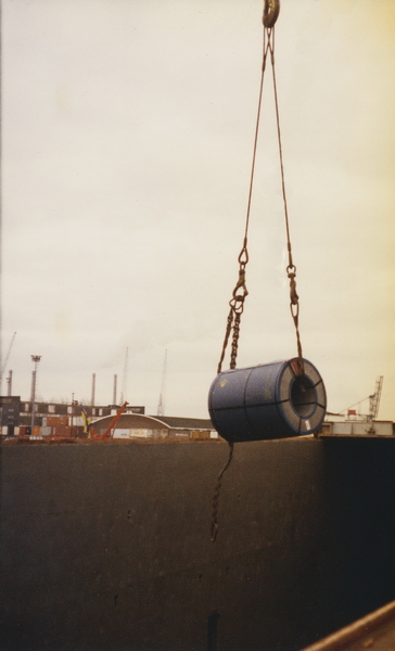 Stahlcoils in Binnenschife löschen in Rotterdam / Unloading steel coils in inland vessels in Rotterdam