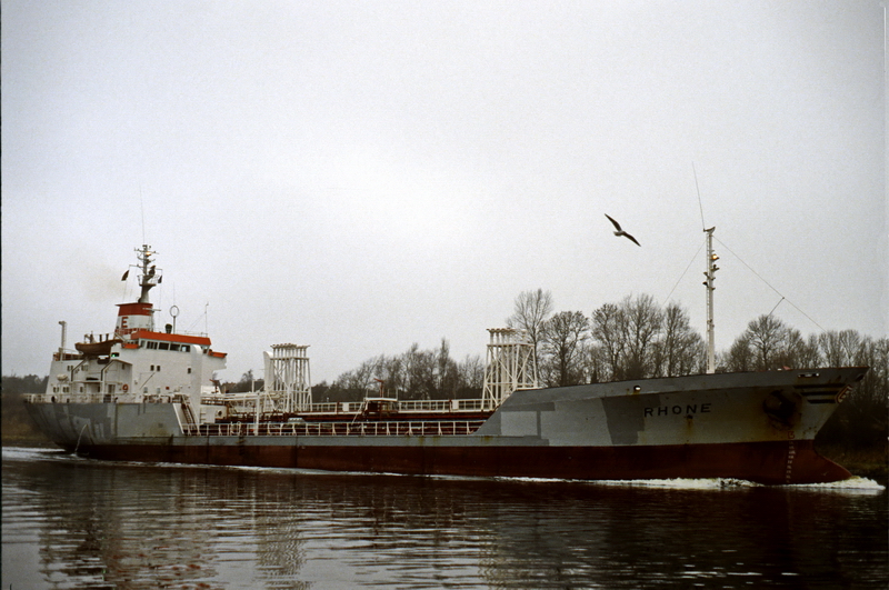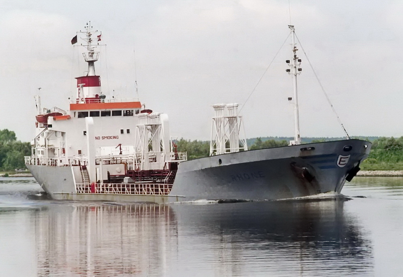 Launched on 7 September 1974 as RHONE at Büsumer Werft GmbH in Büsum (hull / yard no.: 249) and registered on 25 November 1974 for Vinalmar S.A., Geneva, in Bâle (Basel) in the Swiss Register of Sea-Going Ships under number 91. Lloyd's Register / IMO No.: 7361685. Call sign: HBDO. The tanker suffered engine damage and a blackout after a fire in the engine room on the Westerschelde on 11 December 1996. It anchored in the Vlissingen roadstead. Later that same day, it was towed to Wandelaar. Back in service after repairs. On 12 September 1998, reflagged under the St. Vincent & Grenadines flag. Home port Kingstown. Official No.: 7917. Call sign J8VL7. Re-measured with: GRT: 2222, NRT: 913, DWT: 3641. In 2001, the associated company Navale Française S.A. in Puteaux took over management. December 2002: Sold to Astas Denizcilik ve Ticaret Ltd. Sti., Istanbul. St. Vincent flag. Not renamed. Originally, the Turkish owner apparently wanted to rename the ship RHONE-S, as an additional S was welded onto the starboard bow. However, the ship never officially bore this name. July 2003: Registered for Astashipping S.A. (management: Yagmur Deniz Tasimaciligi Nakliye Ticaret Ltd Sirketi, Istanbul), Kingstown. Not renamed. In November 2007: Purchased by Ortak Denizcilik Sanayi ve Ticaret Ltd Sti, Istanbul and registered under the Turkish flag. Not renamed. Official No.: 1436. Call sign: TCSX7. Since 22 September 2009, laid up in Ceuta with 3,200 tonnes of sodium sulphate from Vyborg, Russia. After the tanker ran aground on 15 September 2009 while entering Ceuta at a position of 35°55' N, 05°20' W and suffered various leaks and a list to starboard, which were later sealed. In the meantime, the owner has run out of money and the 15-member crew has not been paid for weeks, and the fresh water and provisions on board have also run out. The tanker was arrested. In September 2009, the leasing bank Yapi Kredi Finansal Kiralama was listed as the ship owner. On 3 May 2010, the rest of the cargo was pumped into another tanker. During the unloading work, a fire broke out in a turbocharger on the auxiliary diesel engine, which spread to the entire engine room. The extent of the damage is not yet known. However, it was later declared a total loss. It was publicly auctioned in July 2013 and has been scrapped at Ege Celik Gemi Sokum As in Aliaga, Turkey, since 5 March 2014. (Total scrap price (US$): 397,300). Sources: