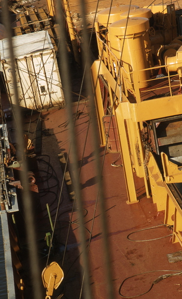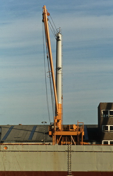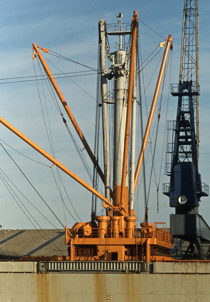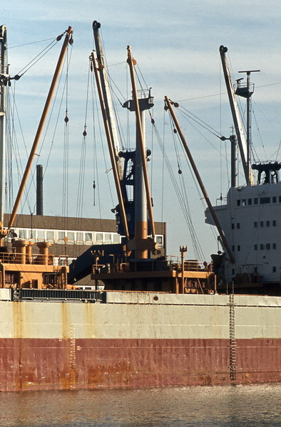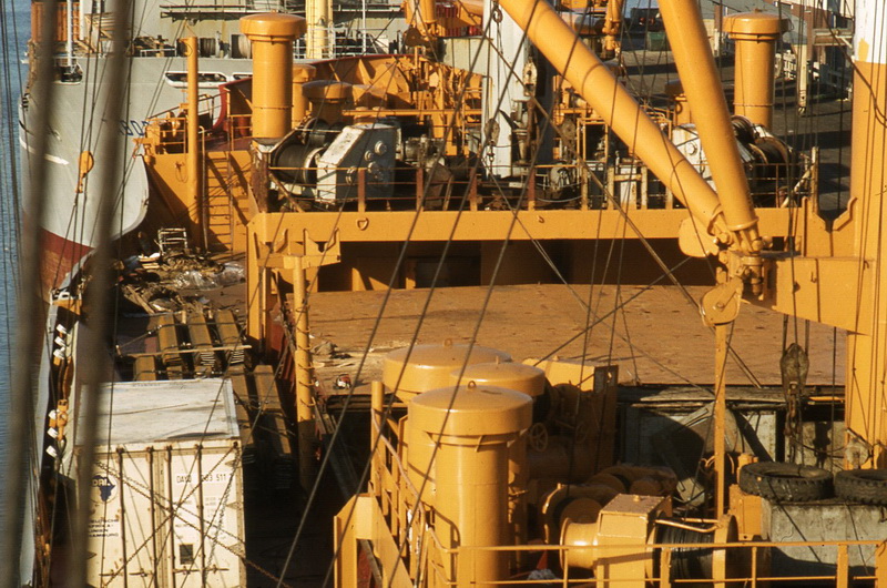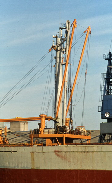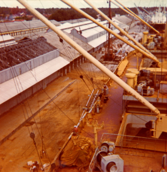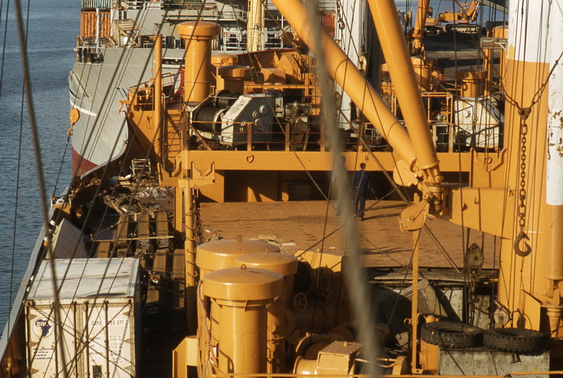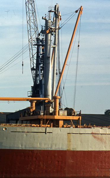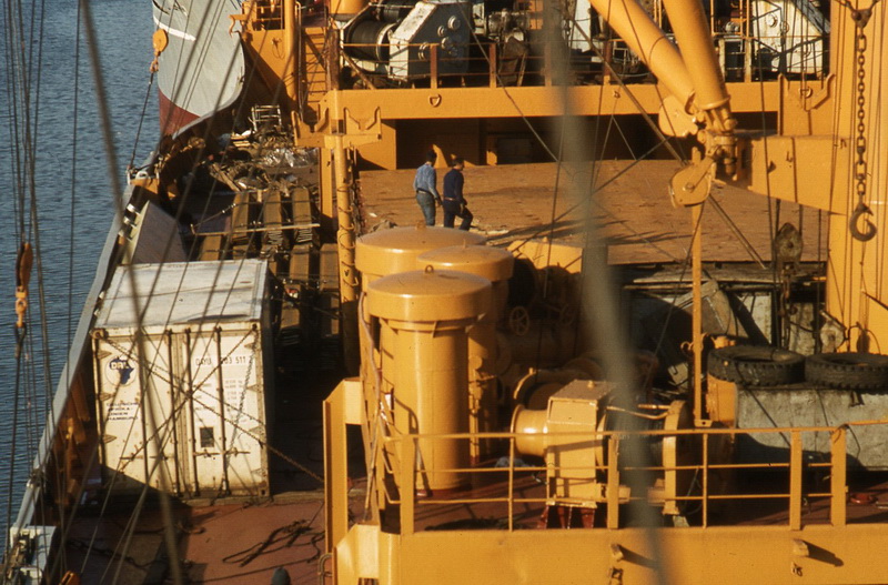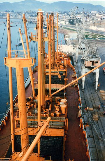 1985 Fischmehl laden in Coquimbo / Chile (vom Radarmast aus fotographiert) / Loading fishmeal at Coquimbo / Chile (taken from the radarmast)