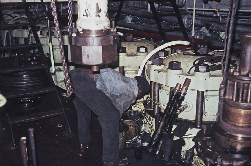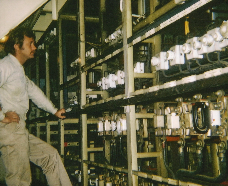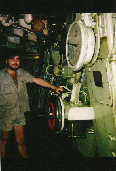 Büchi Walter am Fahrstand vom MAN Hauptmotor