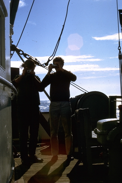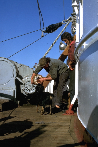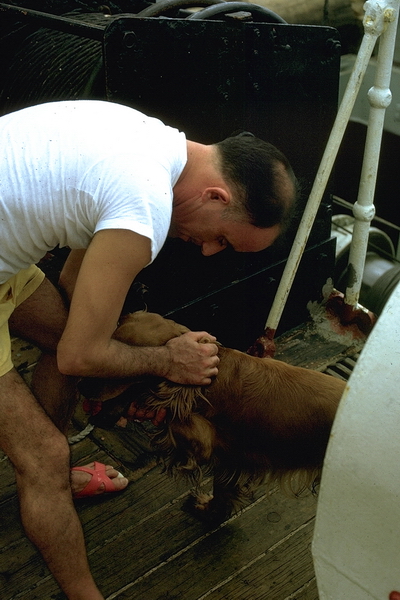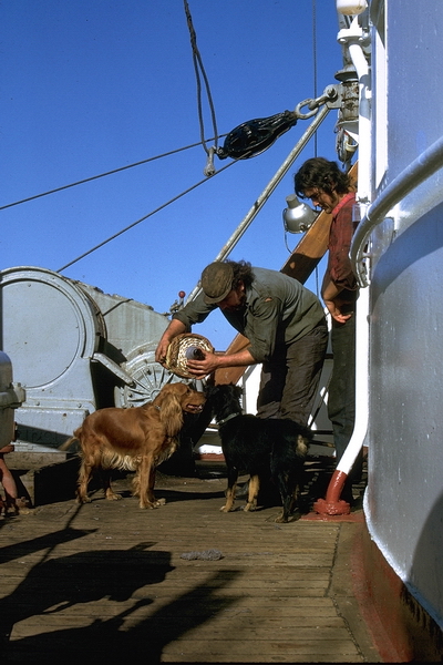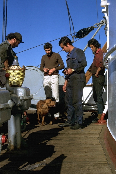springt Kleinpeter Uber Bord um das Képi vom Chippy (Russenberger) zu retten.... Das löst einen Lifboat-Alarm aus, da die Stomung stark ist. Um 23:40 war das Boot zuruck mit ,,Beiden“! Bildherkunft / Photosource: © Max Walser / © SwissShips / Archiv |