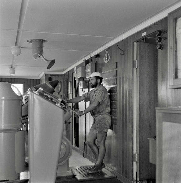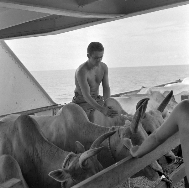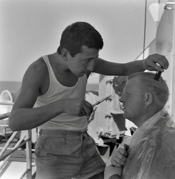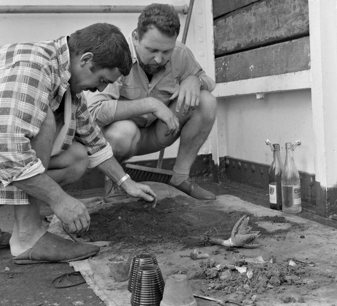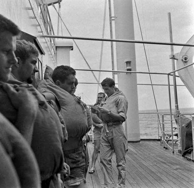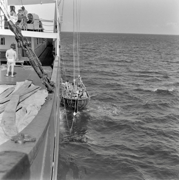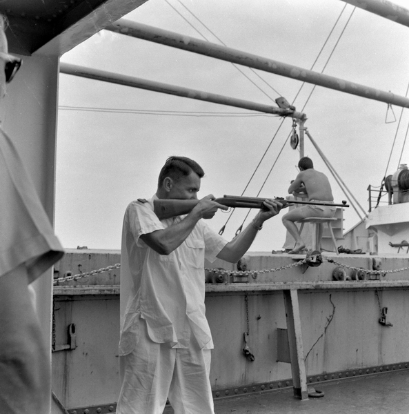 Wettschiessen an Bord am Sonntag, 13. Oktober 1963, Kpitän Domingo Bücheler zielt!