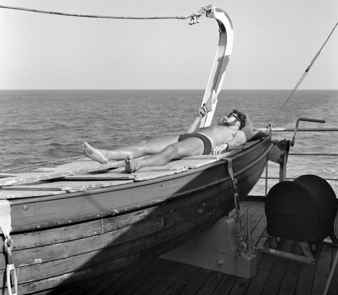 Ausruhen während der Seereise am Sonntag auf dem Dinghi