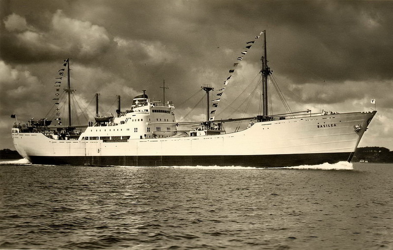 Der Frachter BASILEA wurde als Baunummer 536 von der Flensburger Schiffbau-Gesellschaft, in Flensburg, Deutschland gebaut und im September 1952 abgeliefert. Sie war ein Schwesterschiff der drei Monate zuvor abgelieferten ALLOBROGIA (Bau Nr. 535). Der nachfolgende Frachter, die Baunummer 537 war die JULIA für die SGS in Genf. Sie hatte bei ungefähr gleichen Abmessungen einen grösseren Tiefgang und hatte dadurch auch ungefähr 2000 Tonnen mehr Tragfähigkeit. Sie war kein Schwesterschiff und die Schiffsform war auch anders (durchgehendes Hauptdeck, kein verlängertes Back- und Poopdeck). Am 14.06.1952 wurde das Schiff von Stapel gelassen und von Frau Jaquet, der Ehefrau von Direktor N. Jaquet auf den Namen BASILEA getauft. Am 13.09.1952 wurde der Frachter an die Eigner Alpina Reederei AG, Basel abgeliefert, der Betrieb wurde vorerst von Alpina Transports & Affrêtements SA Antwerpen übernommen (Register Nr. 048, Rufzeichen: HBFK). Der Frachter war mit einem umfangreichen Ladegeschirr bestehend aus einem 30,0 mt Schwergutbaum (Jumbo), acht 8,0 mt (metrischen Tonnen), vier 5,0 mt und vier 3,0 mt Ladebäumen ausgerüstet. Die fünf Ladeluken auf dem Hauptdeck wurden mit dem damals revolutionären Mc-Gregor singel pull Lukensystem verschlossen. Die Hauptmaschine von Sulzer, Typ: 6SD72 war noch nicht mit Turboladern ausgerüstet und wurde noch mit Dieselöl (Gasöl) betrieben, was die Arbeit des Maschinenpersonals wesentlich erleichterte. Der Maschinenraum konnte blitzblank sauber gehalten werden, die Bilgen waren weiss gestrichen und das Messing poliert. Die Stromversorgung an Bord war noch mit Gleichstrom. Die Besatzung der BASILEA betrug normalerweise 35 oder 36 Mann und bestand all die Jahre mehrheitlich aus Schweizern. Verschiedene Schweizer Kapitäne und Leitende Ingenieure bestimmten die Geschicke an Bord. Ansonsten waren auch Offiziere und Seeleute aus Nordeuropa an Bord, später kamen auch Mannschaftsgrade aus Spanien, Portugal, den Philippinen, China, etc. dazu. Das Schiff hatte sehr schöne Einrichtungen für 12 Passagiere. Die Mannschaft war achtern und teilweise mittschiffs untergebracht, in Einer- und Doppelkabinen. Eine Crewbar, die legendäre "Moskito Bar" befand sich auf dem Poop Deck. Das geschnitzte Namensbrett ziert heute den Seemanns Keller im Basler Rheinhafen. Allerdings war noch keine Klimaanlage vorhanden, darum war z. B. im Roten Meer schwitzen angesagt. Am Anfang war das Schiff in der Trampschifffahrt eingesetzt und die Jungfernreise führte nach Montreal am St. Lorenz Strom. Leider stand diese Reise unter einem unguten Stern, schon auf der Reise stromaufwärts nach Montreal kollidierte die BASILEA am 31.10.1952 ungefähr 30 Seemeilen unterhalb von Quebec mit dem kleinen schwedischen Motorschiff RYHOLM (1'733 BRT / Baujahr 1951), das bei dem Unglück sank. Auf beiden Schiffen kam zum Glück niemand zu Schaden. Von 1954 bis Ende 1957 war die BASILEA auf der Linienfahrt des K.H.L. (Koninklijke Hollandsche Lloyd, oder auf englisch Royal Holland Lloyd) von Europa nach der Ostküste Südamerikas eingesetzt. Leider fielen die Frachtraten durch die Konkurrenz der wiederum neu auferstandenen Hamburg-Süd und den Schiffen der Staatsreedereien aus Argentinien und Brasilien und die Charter wurde beendet. Nach einer Zwischenreise mit Getreide von den USA nach Polen, fuhr das Schiff viele Jahre für die Rickmers Reederei, Hamburg nach Ostasien und China, von Frühjahr 1958 bis Ende 1973. Nach dem 6 Tage Krieg zwischen Israel und den arabischen Staaten im Juni 1967 sollte die BASILEA im Juli aus Ostasien kommend, ihre für Alexandrien bestimmte Ladung in Port Tewfik (Suez) löschen. Bei der Anfahrt auf Port Tewfik am 15.07.1967 wurde das Schiff plötzlich von Artillerie beschossen, Glücklicherweise zielten die Kanoniere so schlecht, dass das Schiff keinen Schaden nahm und den Rückweg durch das Rote Meer nach Massawa antreten konnte um die Ladung zu löschen (siehe Zeitungsausschnitt). Da der Suezkanal infolge der Kriegsereignisse bis zum Juni 1975 geschlossen blieb, musste nun die BASILEA auf ihren Ostasienreisen die Route um das Kap der Guten Hoffnung nehmen. Auf der Rückreise von der letzten Ostasienreise lief die BASILEA als ersten Hafen Antwerpen an. Auslaufend Antwerpen am 21.10.1973 kollidierte sie mit dem sowjetischen Tanker KAUNAS (7'653 BRT / Baujahr 56) und wurde auf der Backbordseite mittschiffs stark beschädigt. Glücklicherweise kam niemand zu Schaden, aber das Schiff musste für längere Zeit in die Werft zur Reparatur. Nach Beendigung der Rickmers Zeitcharter fuhr die BASILEA für Woermann Line, Hamburg nach Westafrika bis zu ihrem Verkauf in 1978. Während diesen Jahren lag das Schiff öfters für längere Zeiten, d.h. so 2-3 Monate in Angola (Luanda und Lobito) und in Nigeria vor Anker. In Nigeria lag die BASILEA im Bonny River unterhalb Port Harcourt und im Escravos River auf dem Weg nach Warri. Mit dem Rettungsboot konnte meistens ein Landgang ermöglicht werden und im kleinen Dörfchen am Escravos River bauten die Matrosen aus Stauholz sogar einen kleinen Landungssteg um ohne nasse Füsse an Land zu kommen. Nach knapp 26 Dienstjahren unter Schweizer Flagge wurde die BASILEA an Freestone Lines Co. Ltd. in Limassol, Zypern (Management: Thomas Zachariou Shipping Co. SA, Athen) verkauft. Am 02.06.1978 wurde sie aus dem Schweizer Register gestrichen und an ihre neuen Besitzer übergeben. Unter dem neuen Namen LUCKY PENNY (BRT: 6'211, NRT: 3301, DWT: 9718, Rufzeichen P3HJ) fuhr sie unter der Flagge von Zypern noch weitere fünf Jahre. 1983 wurde das Schiff zum Abbruch an die Firma Brodospas nach Jugoslawien verkauft und lief am 09.07.1983 in Sveti Kajo bei Split zum Verschrotten ein. SwissShips-HPS, HB, MB, im Februar 2013