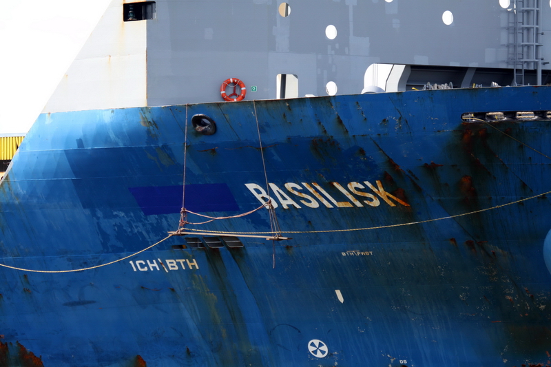 Questa nave multi uso (MPV Multi Purpose Vessel) IMO 9569677 viene commissionata dalla Safmarine Container Line NV, Anversa, dal cantiere Wuhu Xinlian Shipbuilding Co. Ltd., Wuhu, provincia Anhui, Repubblica Popolare Cinese (numero di costruzione: W0823). Chiglia impostata il 31-05-2010 ed il 20-11-2010 viene varata con il nome originariamente previsto SAFMARINE SUDD. A quanto pare era previsto di immatricolare la nave a Singapore, nominativo internazionale: VRIP3. Durante le prove in mare la nave porta il nome cinese provvisorio XIN LIAN 1103 e era immatricolata a Hong Kong. Safmarine Container Line NV, Anversa, non accetta la nave ed in seguito viene messa in disarmo nel cantiere di costruzione lungo le sponde sul fiume Yangtse (a ca. 350 km a monte). Dopo nuove trattative, la SCL (Swiss Cargo Line) Reederei AG, Berna, aquisisce la nuova costruzione. Il 05-08-2013 viene immatricolata con il nome SCL BASILISK nel registro delle navi Svizzere, porto d'iscrizione Basilea (numero matricola: 211, nominativo internazionale: HBLG, proprietaria registrata: SCL Basilisk AG, Berna, Svizzera). La gestione sia tecnica che commerciale viene eseguita dalla Enzian Ship Management AG, Zurigo, Svizzera. La nave ha una portata di 17953 tonn. ad una immersione alla marca estiva di 8,60 m (Summer DWT) e ha la capacità per 1034 contenitori TEU. La SCL BASILISK ha 3 stive e 3 gru elettroidrauliche della McGregor, ognuna con una portata di 80 tonn. 2 gru possono essere usate in coppia sollevando un peso di 150 tonn. La propulsione avviene tramite un motore Diesel 6 cilindri a bassi giri della MAN/B&W, tipo 6S50 MC-C MK8, costruito in licenza dalla Doosan, Corea del Sud (9960 kW a 127 giri/min.). L'equipaggio è composta da 18 persone. Il comandante e lo stato maggiore provengono dall'Europa dell'Est, gli altri ufficiali ed i comuni sono del Sri Lanka. Il viaggio inaugurale lo esegue dalla Cina attravarso il canale di Panama con destinazione Mar dei Caraibi. Dal 9 novembre 2017 la società proprietaria si chiama MV Basilisk AG. 22 novembre 2017 alle 15:30 ora locale (13:30 UTC) a Durban fino a Massoel Shipping SA Ginevra. Proprietario e bandiera rimangono gli stessi. Il nome della nave è nuovo THORCO BASILISK. SwissShips, HPS, HM, MB, agosto 2013 La Auerbach Bereedung GmbH & Co. KG di Amburgo, il 31-03-2020 assume la gestione della nave. La gestione passa alla Blue Squared AG di Berna in data 24-09-2020. Il 02 settembre 2022 rinominata BASILISK. Il cambio nome è avvenuto nel porto di Amburgo. Il 13-12-2022 nel porto di Houston nel Texas negli Stati Uniti ha avuto luogo il cambio alla bandiera liberiana. Il nuovo nominativo internazionale: 5LJL4, numero matricola: 22571. Dal 14-12-2022 la MINMARINE MPP Shipmanagement GmbH & Co. KG, Amburgo si occupa della gestione della nave. Dal 30 agosto 2023 anche l’indirizzo della proprietaria è elencata come Care of (c/o) MPP Shipmanagement GmbH & Co KG, Deichstrasse 48-50, 20459 Hamburg. Il 23 maggio 2024 pirati hanno catturato la nave da carico BASILISK antistante la costa della Somalia, un paese dell’Africa dell’Est. Secondo dichiarazioni da parte dell’operazione della UE “Atalanta” l’evento era avvenuto giovedì nel oceano Indiano a circa 700 chilometri ad est della capitale somala Mogadischu. Il mezzo in pattugliamento nella zona, la nave da guerra spagnola “Canarias”, era accorsa in aiuto liberando la nave da carico multiuso battente bandiera liberiana. I 17 membri dell’equipaggio sarebbero al sicuro, comunica la direzione di intervento-Atalanta venerdì a Rota in Spagna. Nell’assalto il comandante era stato ferito al braccio tramite un colpo di arma da fuoco. La nave si trovava in viaggio da Porto Grande sulle isole di Capo Verde verso Jebel Ali negli Emirati Arabi Uniti. |