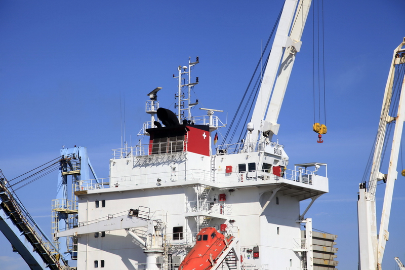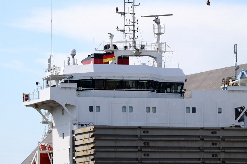 Blick zum Steuerhaus die Gastlandflagge ist gut sichtbar / View of the wheelhouse, the courtesy flag is clearly visible