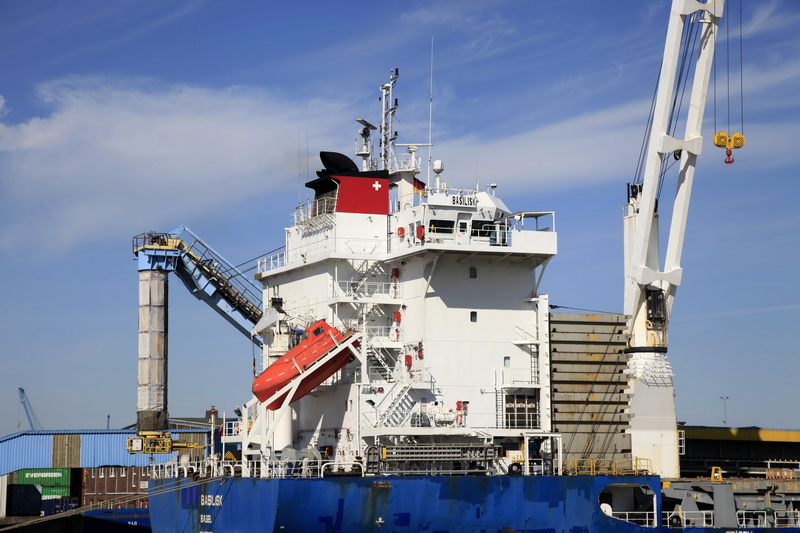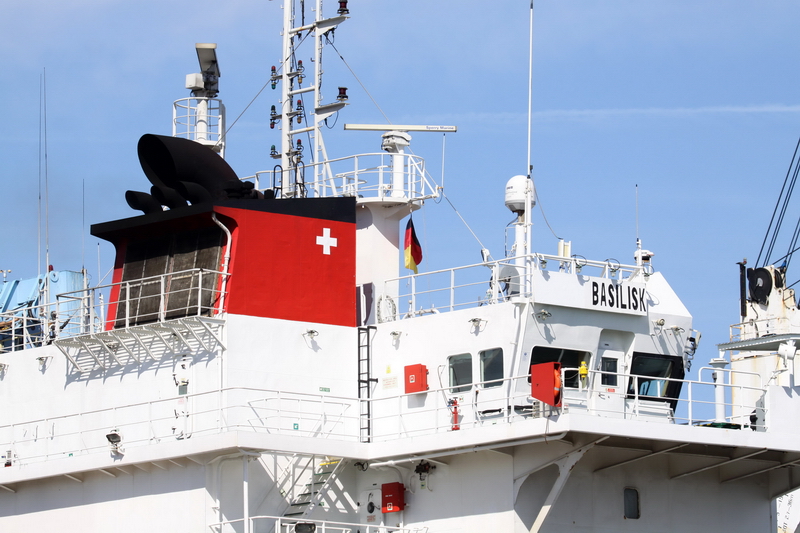 Dieser Mehrzweckfrachter IMO Nr.: 9539377 wurde am 18.09.2008 von Safmarine Container Line NV, Antwerpen bei der Werft Wuhu Xinlian Shipbuilding Co. Ltd, Wuhu, Anhui Provinz, Volksrepudlik China bestellt (Bau Nr.: W0823). Am 31.05.2010 wurde der Kiel gelegt und am 20.11.2010 lief das Schiff unter dem ursprünglich vorgesehenen Namen SAFMARINE SUDD von Stapel. Anscheinend war vorgesehen das schiff in Singapur zu registrieren, Rufzeichen: VRIP3. Während den Probefahrten trug der Neubau den provisorischen, chinesischen Namen XIN LIAN 1103 und soll in Hong Kong registriert gewesen sein. Safmarine Container Line NV, Antwerp akzeptierten das Schiff jedoch nicht und folglich wurde es in der Bauwerft am Ufer des Yangtze Flusses aufgelegt (ungefähr 350 km stromaufwärts). Nach neuen Verhandlungen übernahm die SCL (Swiss Cargo Line) Reederei AG, Bern den Neubau. Am 05.08.2013 wurde der Frachter im Schweizerischen Seeschiffsregister unter dem Namen SCL BASILISK eingetragen mit Heimathafen Basel (Register Nr.: 211, Rufzeichen: HBLG, registrierter Eigner: SCL Basilisk AG, Bern, Schweiz). Die technische und kommerzielle Betreuung wird von Enzian Ship Management AG, Zürich, Schweiz durchgeführt. Dieser Mehrzweckfrachter hat eine Tragfähigkeit von 17'953 mt bei einem Tiefgang von 8,60 m (Sommer DWT) und kann 1034 TEU Container laden. Die SCL BASILISK hat 3 Laderäume und 3 elektro-hydraulische Kräne von McGregor, jeder mit einer Hebefähigkeit von 80 mt. Zwei Kräne können in Tandem eine Ladung von 150 mt heben. Der Antrieb erfolgt durch einen langsam laufenden 6-zylinder Dieselmotor von MAN B&W, Typ: 6S50 MC-C MK8, gebaut unter Lizenz von Doosan, Südkorea (9'960 kW bei 127 RPM). Die Besatzung zählt 18 Personen. Der Kapitän und die höheren Offiziere sind aus Osteuropa, die anderen Offiziere und die Mannschaft sind aus Sri Lanka. Die Jungfernreise führte von China durch den Panamakanal nach der Karibischen See. Seit dem 09.11.2017 heisst der Eigner MV Basilisk AG. 22. November 2017 gegen 15:30 Uhr Ortszeit (13:30 Uhr UTC) in Durban an Massoel Shipping SA Genf übergeben worden. Eigner und Flagge bleiben gleich. Der Schiffsname lautet neu THORCO BASILISK. SwissShips HPS-MB August 2013 Am 31.03.2020 übernimmt die Auerbach Beerederung GmbH & Co. KG aus Hamburg das Schiffsmanagement. Am 24.09.2020 übernimmt die Blue Squared AG Bern das Schiffsmanagement. Ab dem 2. September 2022 heisst der Frachter BASILISK. Die Namensänderung erfolgte im Hafen von Hamburg. Am 13.12.2022 im Hafen von Houston, Texas in den USA fand der Flaggenwechsel unter Liberia Flagge statt. Das neue Rufzeichen lautet 5LJL4. Offizielle Nr.: 22571. Ab dem 14.12.2022 ist nun die MINMARINE MPP Shipmanagement GmbH & Co. KG, Hamburg für das Schiffsmanagement zuständig. Seit dem 30. August 2023 ist nun auch die Eignergesellschaftsadresse als Care of (c/o) MPP Shipmanagement GmbH & Co KG, Deichstrasse 48-50, 20459 Hamburg, gelistet. Am 23. Mai 2024 haben Piraten vor dem ostafrikanischen Land Somalia den Frachter BASILISK gekapert. Der Vorfall ereignete sich nach Angaben der EU-Marineoperation "Atalanta" am Donnerstagabend im Indischen Ozean rund 700 Kilometer östlich von der somalischen Hauptstadt Mogadischu. Das in der Nähe patrouillierende spanische Kriegsschiff "Canarias" sei zu Hilfe geeilt und habe den unter liberianischer Flagge fahrenden Mehrzweckfrachter befreit. Die 17 Besatzungsmitglieder seien in Sicherheit, teilte die Atalanta-Einsatzführung am Freitag im spanischen Rota mit. Bei dem Überfall wurde der Kapitän durch eine Schusswunde im Arm verletzt. Das Schiff war auf einer Reise von Porto Grande auf den Kapverden, nach Jebel Ali in den Vereinigten Arabischen Emiraten. |
