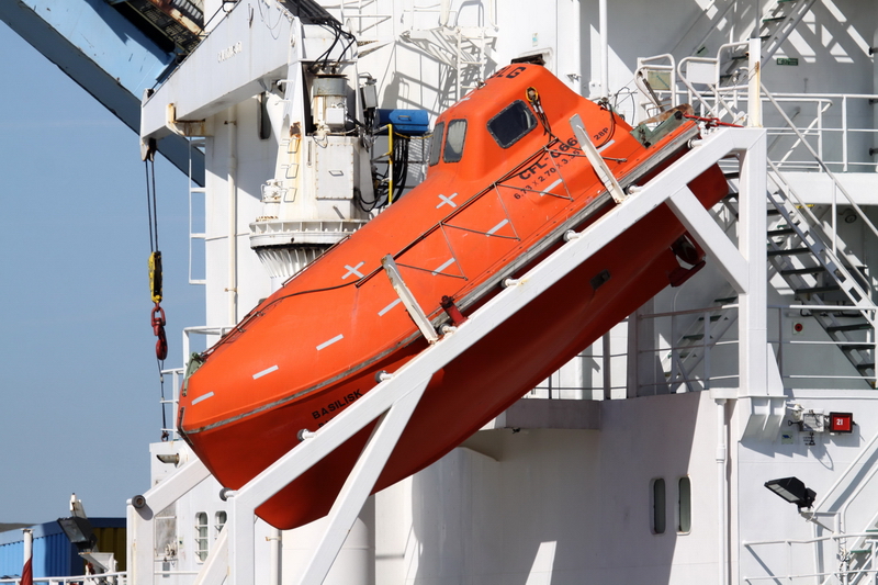 Blick auf die gestaute Gangway und die Rettungsinsel / View of the stowed gangway and life raft