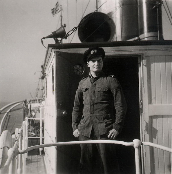 3. Offizier J. Voirol auf der Kommandobrücke / 3rd Officer J. Voirol on the bridge