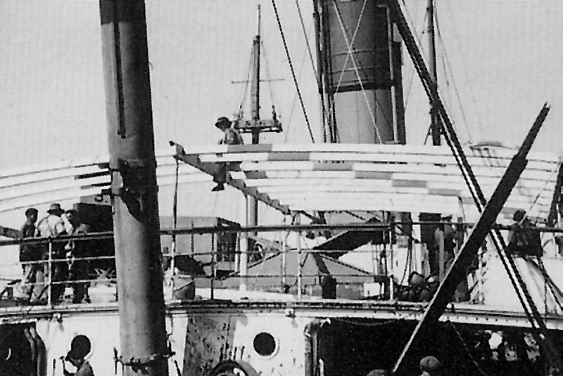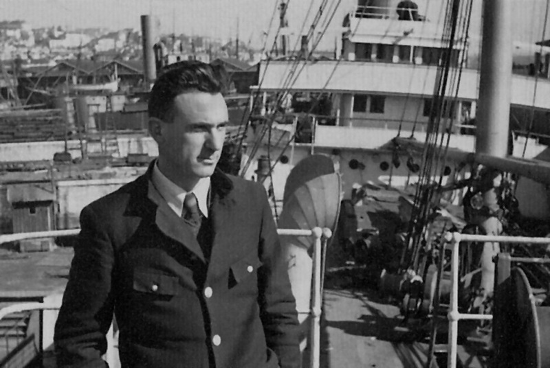 Der belgische Kapitän Marcel Henrotin an Bord der CHASSERAL in Lissabon vor dem grossen Umbau des Dampfers, wohnte im Kanton Tessin / Belgian captain Marcel Henrotin aboard the CHASSERAL in Lisbon before the steamer underwent major renovations. He lived in the canton of Ticino