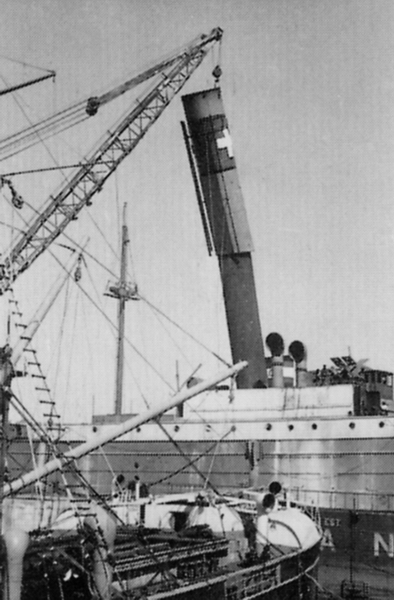 Ende 1941 wird die S/S CHASSERAL in Lissabon in der Werft Companhia Uniao Fabril überholt und umgebaut. 60% der Eisenteile des Schiffes wurden damals erneuert. Die Ölfeuerung wurde wieder durch konventionelle Kohlefeuerung ersetzt, da Kohle während des Krieges wesentlich einfacher zu beschaffen war als Marine Fuel oder Dieselöl / At the end of 1941, the S/S CHASSERAL was overhauled and converted at the Companhia Uniao Fabril shipyard in Lisbon. 60% of the ship's iron parts were replaced at that time. Oil firing was replaced by conventional coal firing, as coal was much easier to obtain during the war than marine fuel or diesel oil