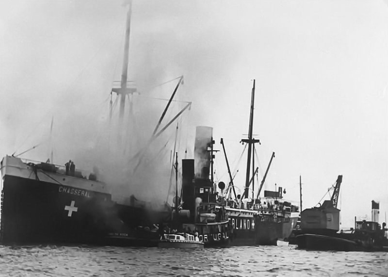 Feuer in der Copraladung am 21.08.1943 in Lissabon / Copra cargo fire at Lisbon on August 21, 1943